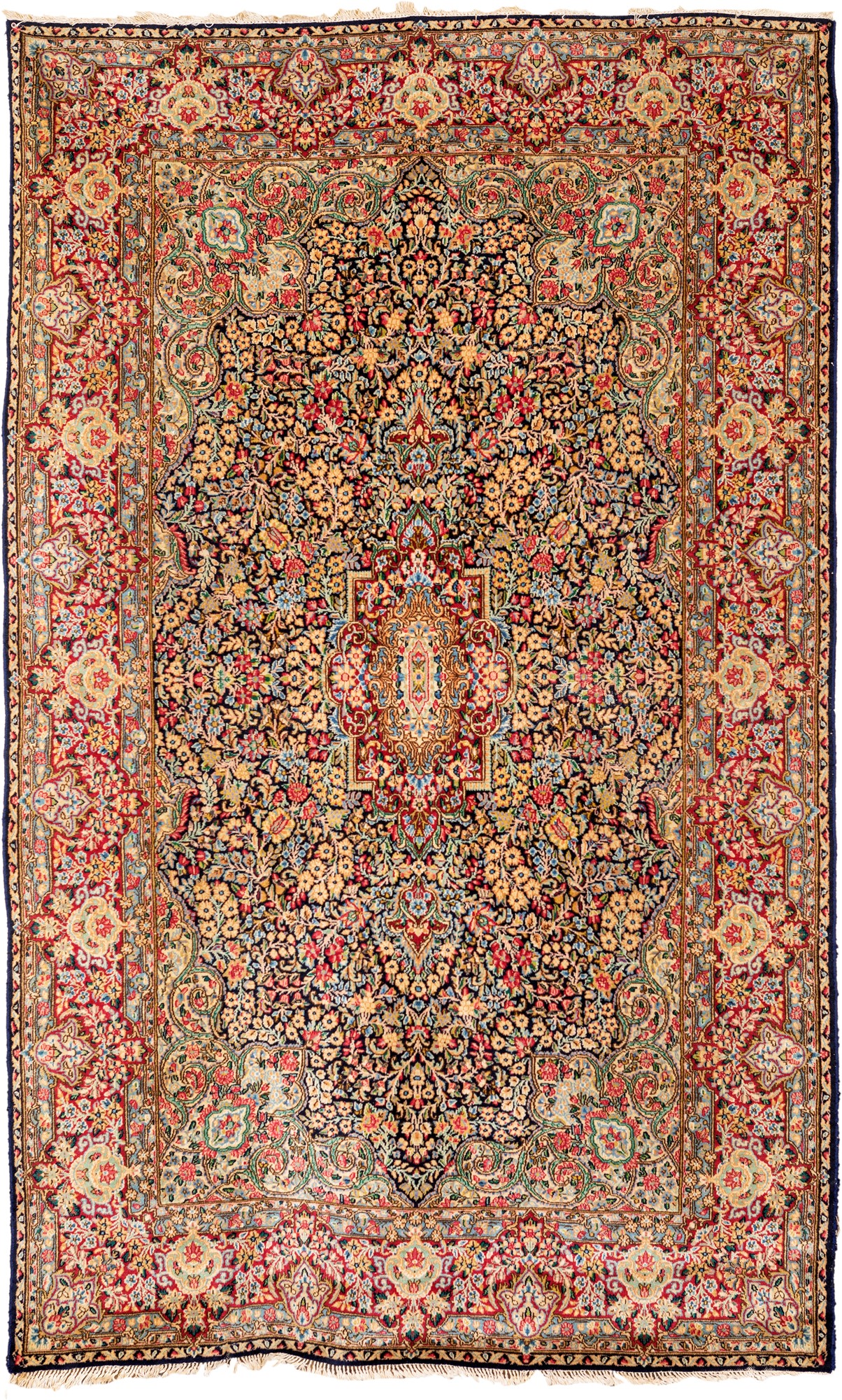 Tappeto persiano Kirman fondo blu con fitto disegno floreale