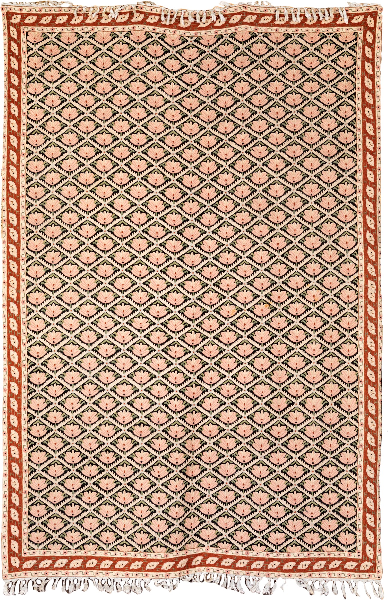 Tappeto/arazzo floreale punto catenella con peonie a tutto campo entro losanghe cm 264x176