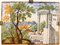 Mattonella in maiolica policroma, Castelli, seconda metà del XVIII secolo raffigurante un paesaggio con resti architettonici di un tempio antico a destra ed un grande albero a sinistra cm 19,5x26,5