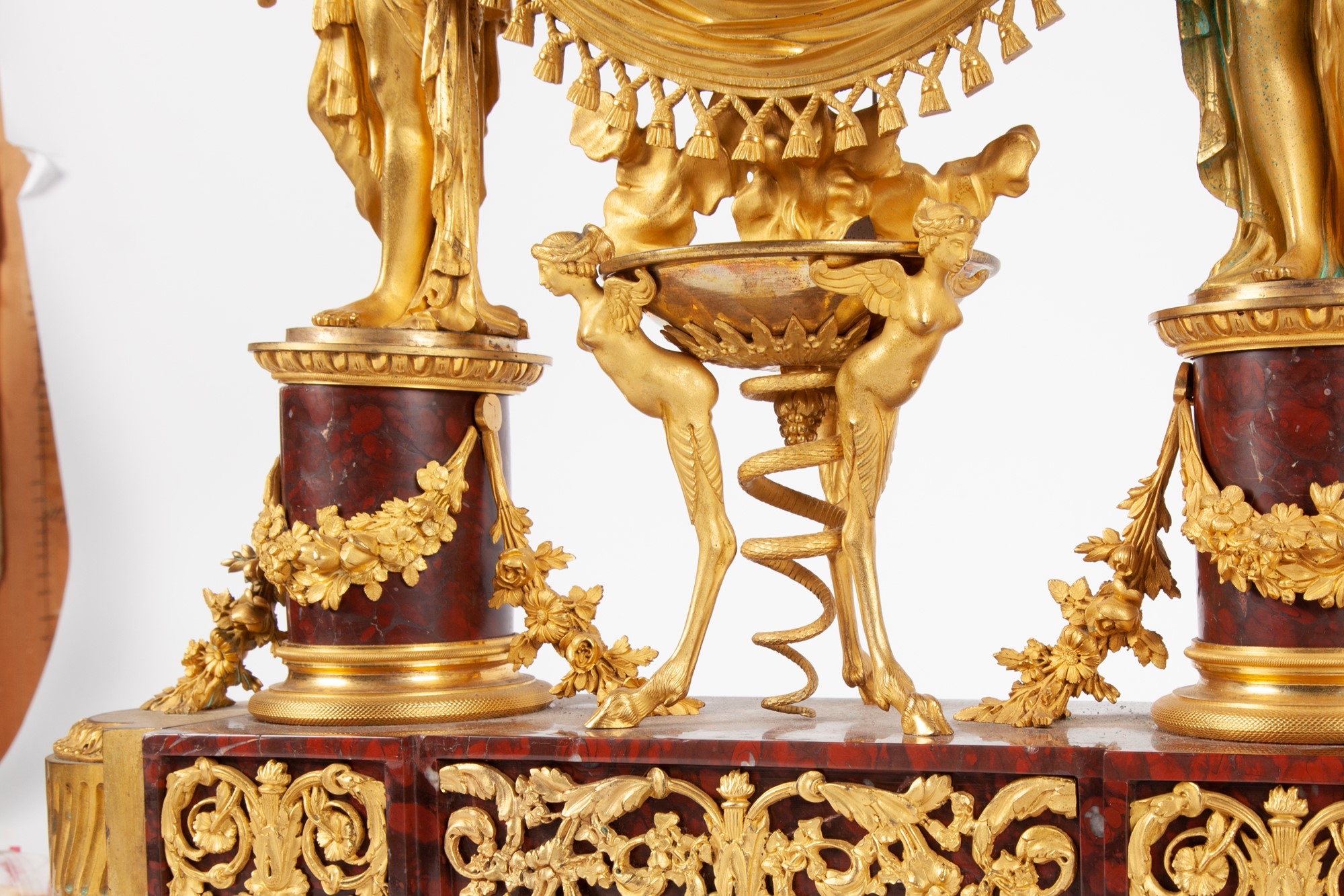 Orologio da camino Luigi XVI in bronzo dorato e marmo rouge griotte, Francia, fine del XVIII secolo