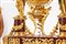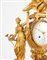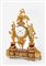 Orologio da camino Luigi XVI in bronzo dorato e marmo rouge griotte, Francia, fine del XVIII secolo cassa circolare sorretta da tripode e sormontata da un capitello dominato da rapace cavalcato da amorino, con quadrante in smalto bianco a due fori di carica con indicazione oraria a numeri arabi, firmato Ridel à Paris; ai lati figure muliebri a tutto tondo su mezze colonne guarnite da festoni in bronzo cesellato; base in marmo su piedi a trottola cm 67x50x12