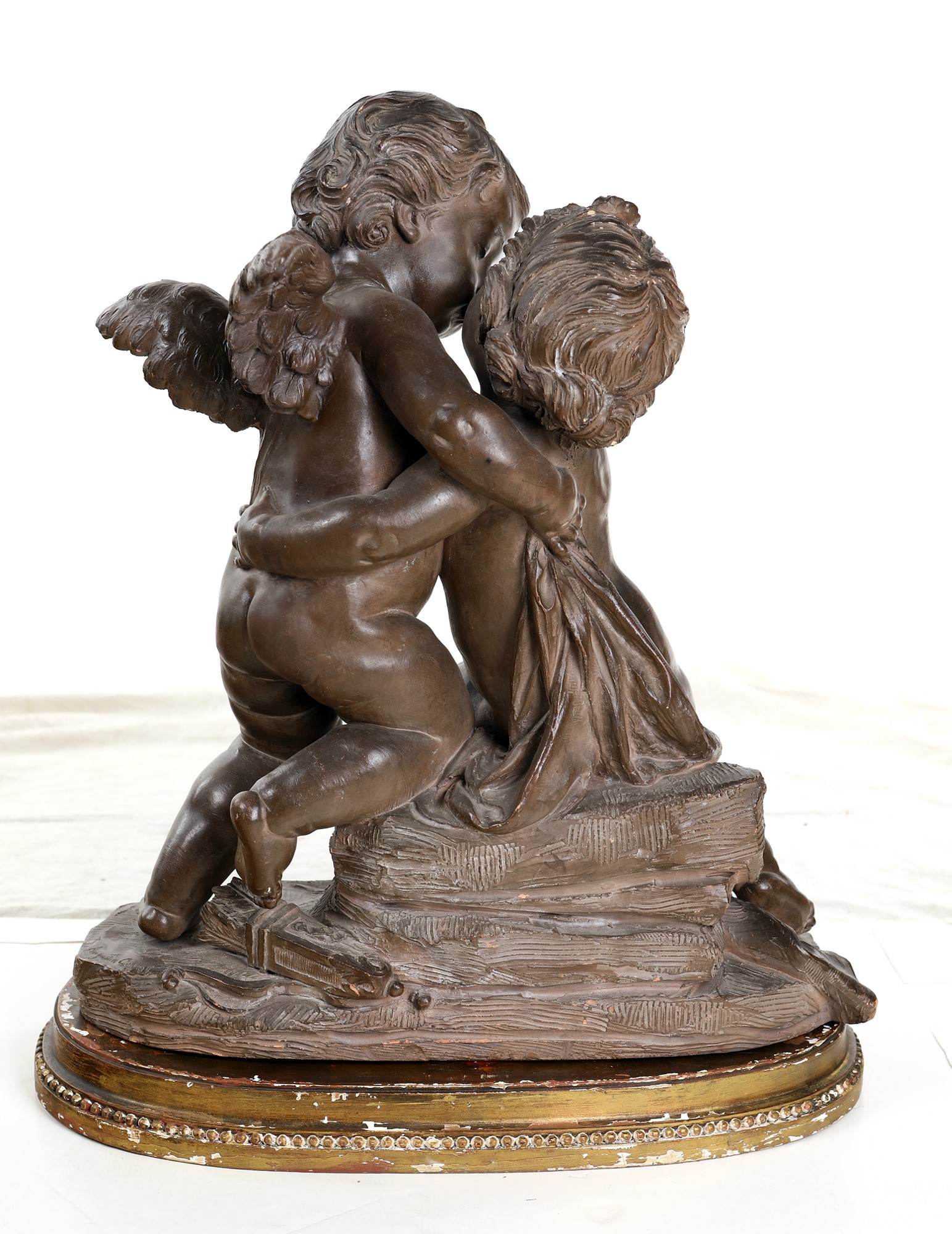 Gruppo in terracotta con Amore e Psiche dall'originale di Claude-Augustin Cayot, Francia, XIX secolo