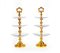 Coppia di alzate centrotavola in metallo sbalzato e dorato con tre ripiani in cristallo