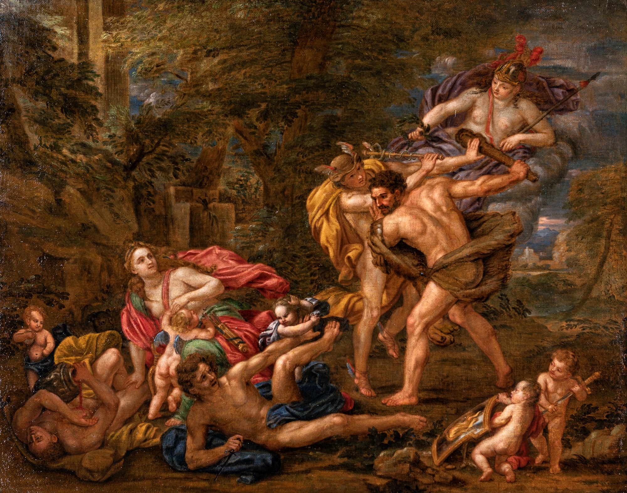 Scuola Romana del XVIII secolo Minerva incorona Ercole accompagnato da Mercurio