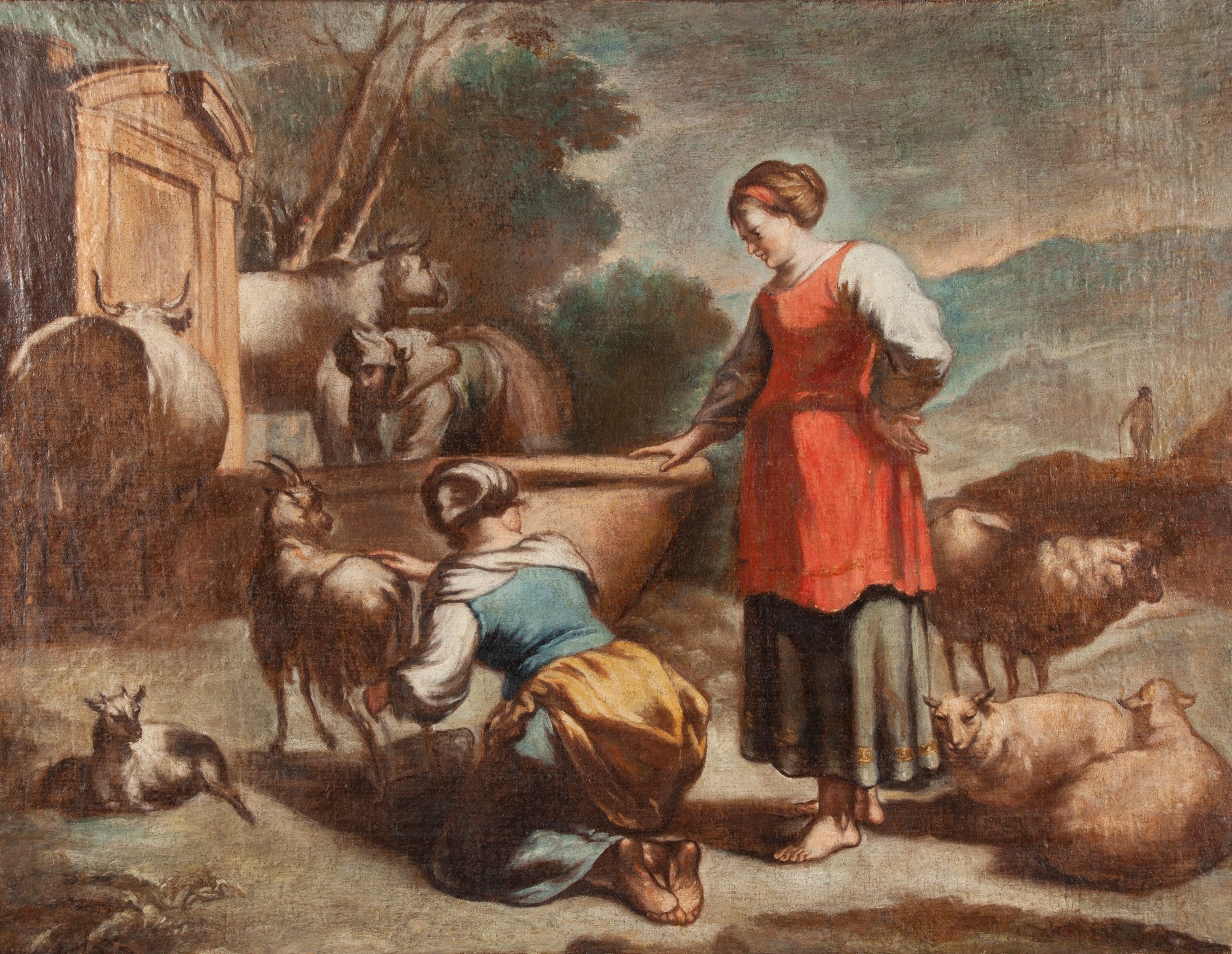 Pittore fine del XVIII secolo Lavandaie al fontanile