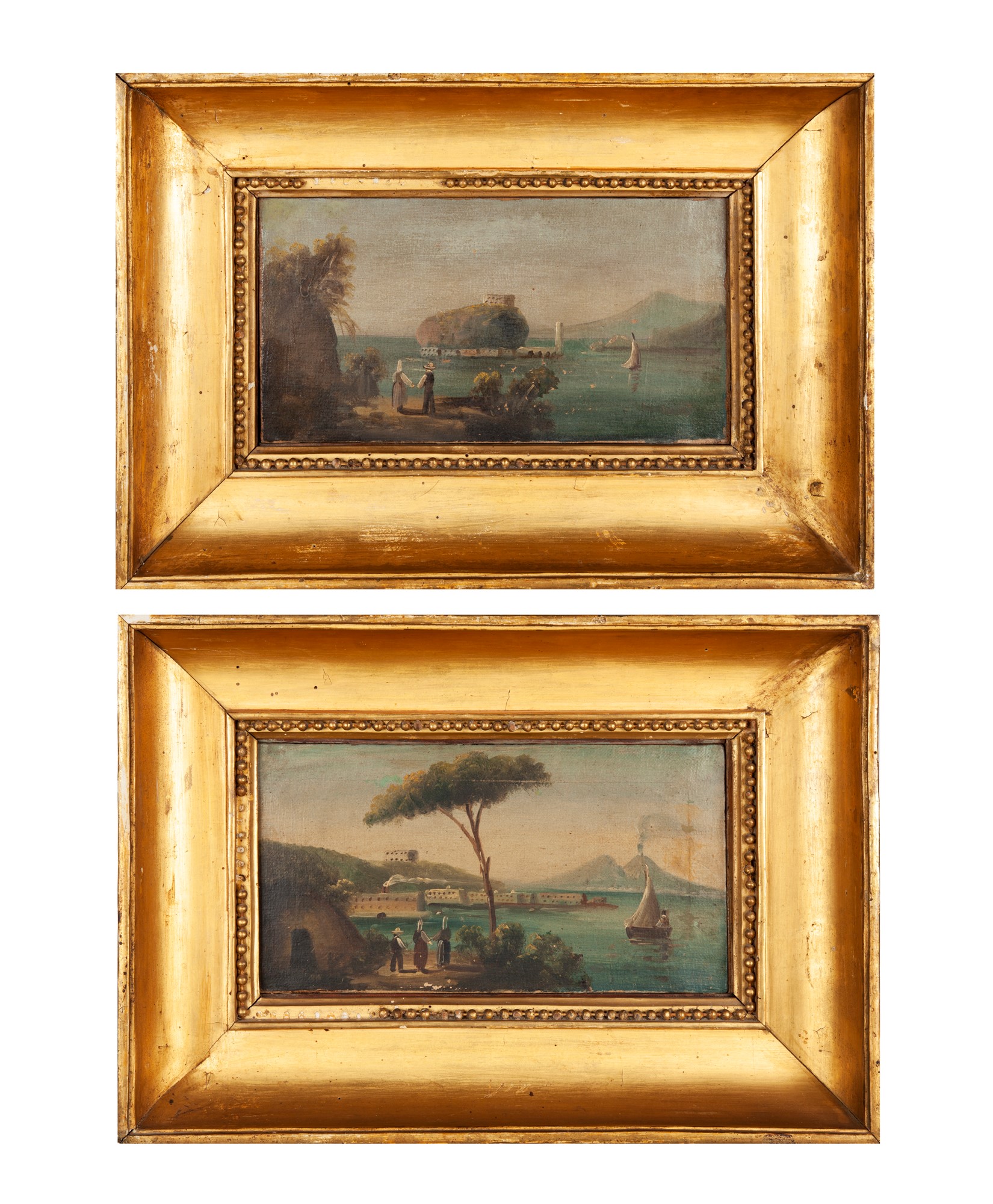 Scuola di Posillipo 0-0 Vedute del golfo di Napoli coppia di olii su tela cm 19x36 - in cornice cm 36x52