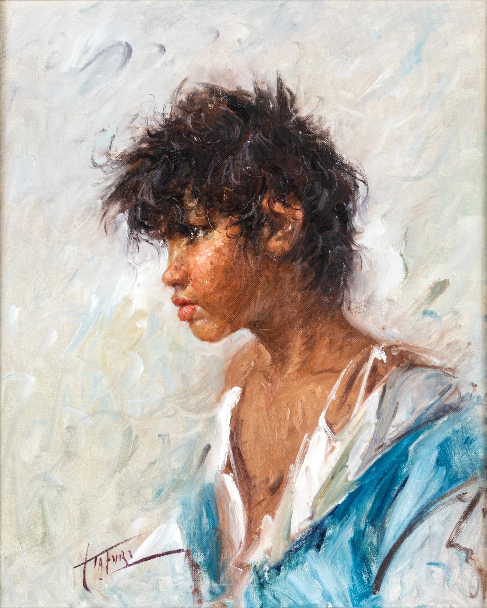 Clemente Tafuri Salerno 1903-Genova 1971 Ragazzo Firmato in basso a sinistra "Tafuri" L'opera è databile nella metà del XX secolo olio su tela cm 50x40 - in cornice cm 70x61,5