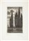 Francesco Vitalini Fiordimonte Camerino 1865-Auronzo 1904 Cipressi Iscritto "al pennello" in basso a sinistra. Firmata a matita in basso a destra "P. Vitalini". Provenienza: eredi Ettore Modigliani, Milano. acquaforte cm 12x7,5 - in cornice cm 28x19,5