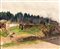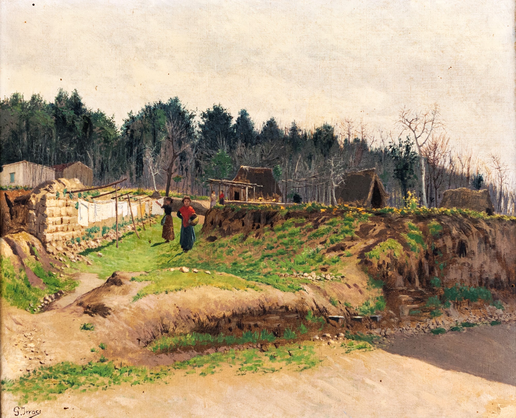 Gaetano Jerace Polistena 1860-Napoli 1940 Paesaggio con lavandaie Olio su tela cm 35x43 con cornice 60x68