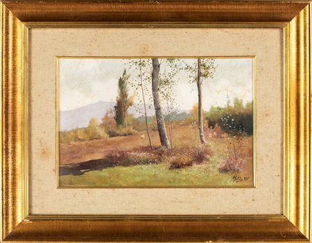 Rutilio Muti Vícchio di Mugello 1904-Vícchio di Mugello 1995 Paesaggio Firmato in basso a destra olio su tavoletta cm 27x40 - con cornice