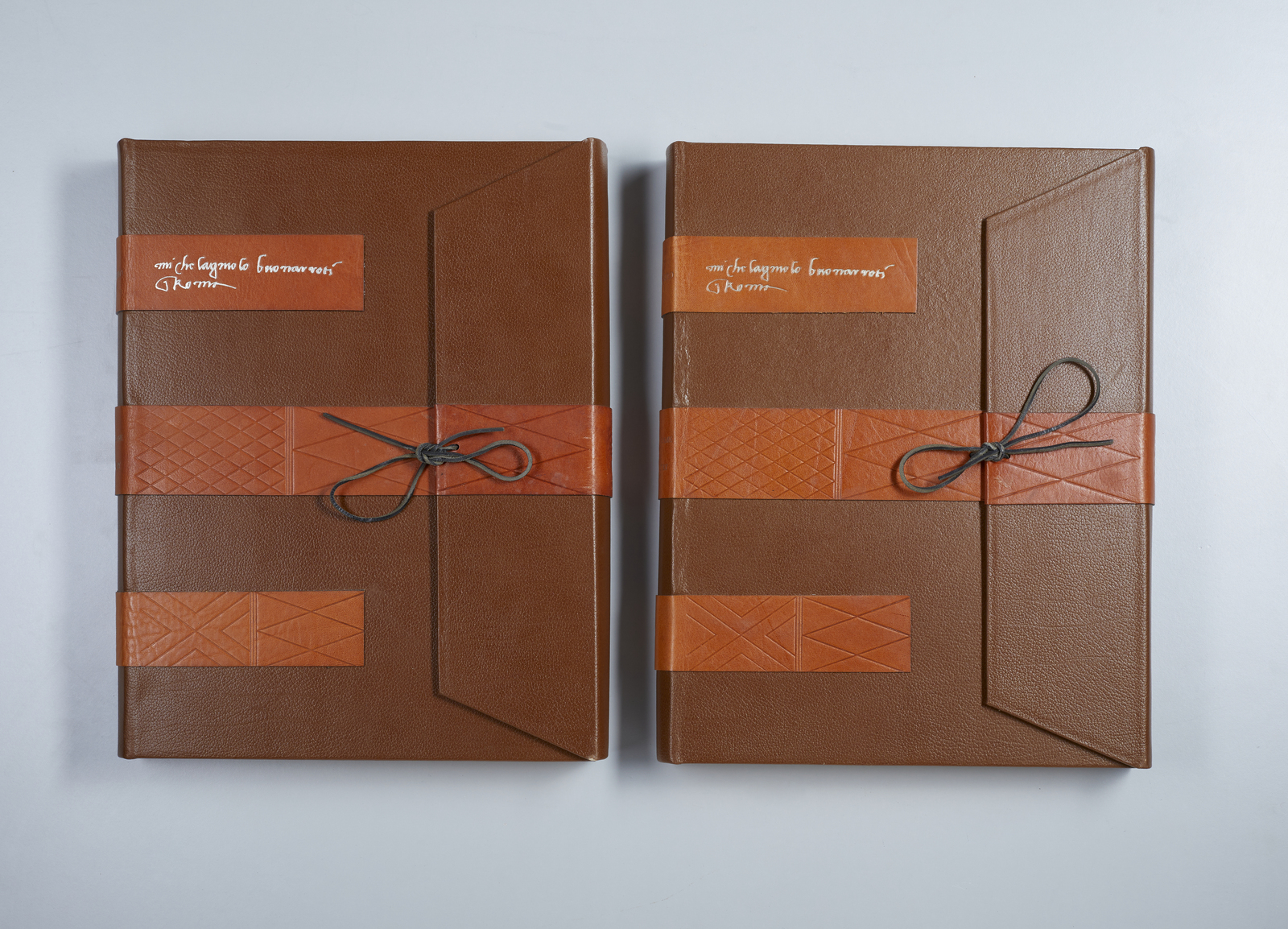 DAUTRY MARC (1930 - 2008) Michelangiolo Buonarroti. 1975. Libro d'artista. Cm 35,50 x 44,00 x 5,00. 1229/2000. Raccolta di 2 volumi contenenti 17 incisioni in rame. Firma a matita su ogni foglio. Edizione totale: 2000 esemplari di cui 30 fuori commercio, 8 ad personam corredati da una lastra originale in rame, 16 ad personam accompagnati da un disegno originale in sanguigna, 126 corredati da una serie di incisioni su carta giappone con numeri da I a CXXVI, 1820 completi di incisioni su carta arches, numerati da 1 a 1820. Dimensione foglio: 43x32.5 cm. Dimensione lastra: 26.7x20.7 cm. Editore: Eldec spa Edizioni pregiate, Roma. Carta a mano Grand Velin d'Arches, Cartiere Arches. Stampate in torchio a mano da Manuel Robbe. Il carattere del testo Caslin Two Lines Pica è stato fuso appositamente per questa edizione dalla Foderia Caslon Radiguer di Parigi su matrici originali del 1734. La composizione a mano, l'impaginazione e la stampa tipografica sono state eseguite da Yvette e Jean Paul Vibert. Legatura eseguita dalla Legatoria Conti Borbone di Milano. Lievi difetti.