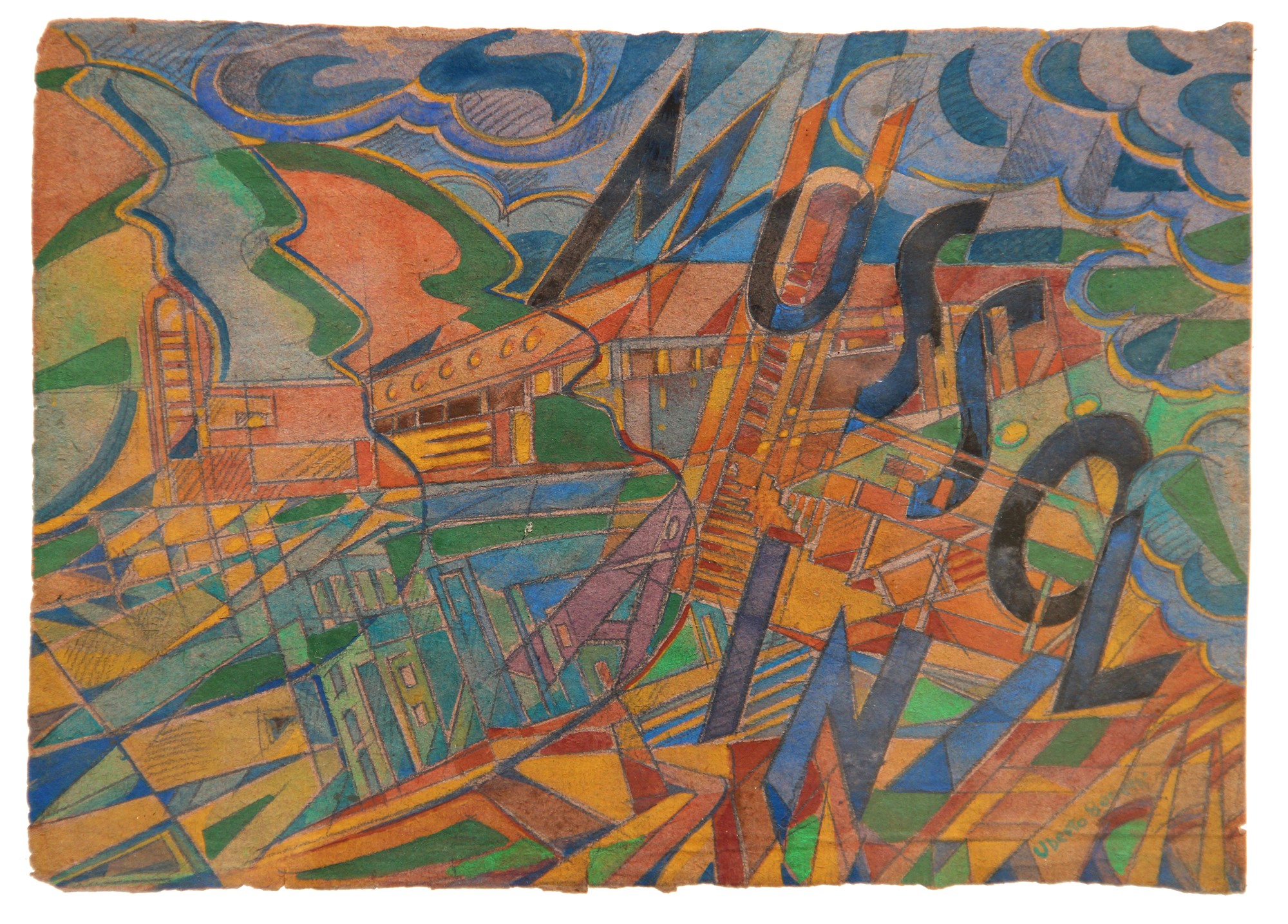 Uberto BONETTI, Mussolinia-aerosintesi, anni 30, tecnica mista su cartoncino, cm 22x31,5