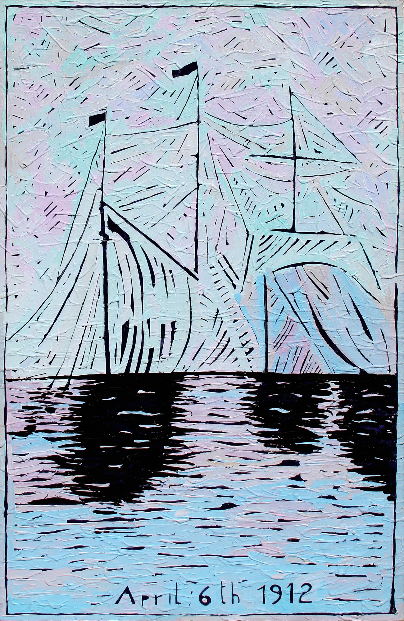 Aldo MONDINO, Barca che affonda - April 6th 1912, 1980, olio su tela, cm 140x90