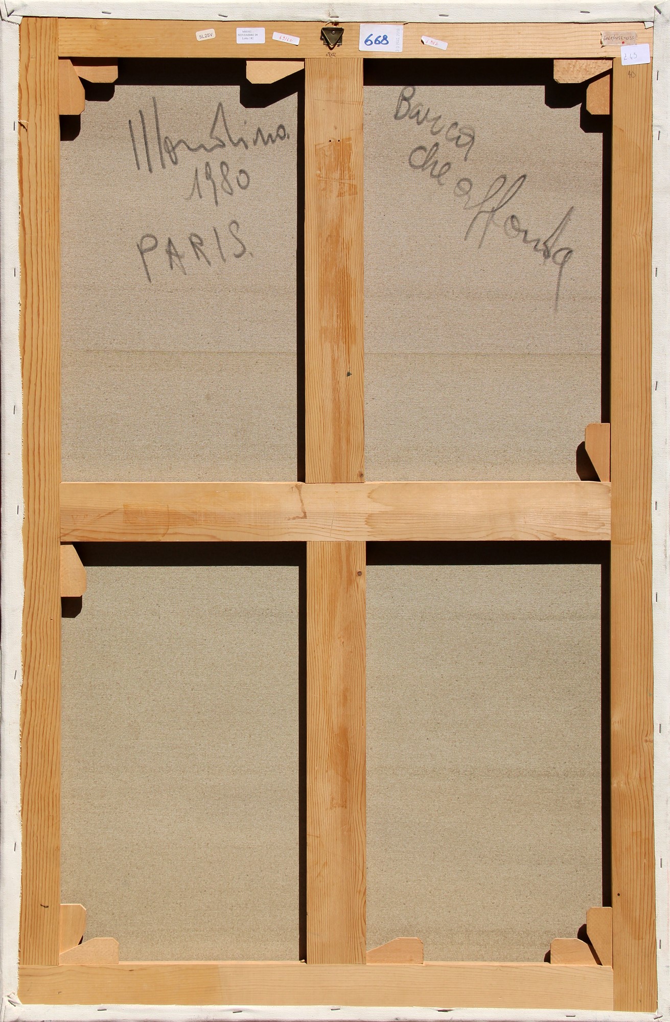 Firma, data, luogo, titolo "Mondino, 1980, Paris, Barca che affonda" (al retro)