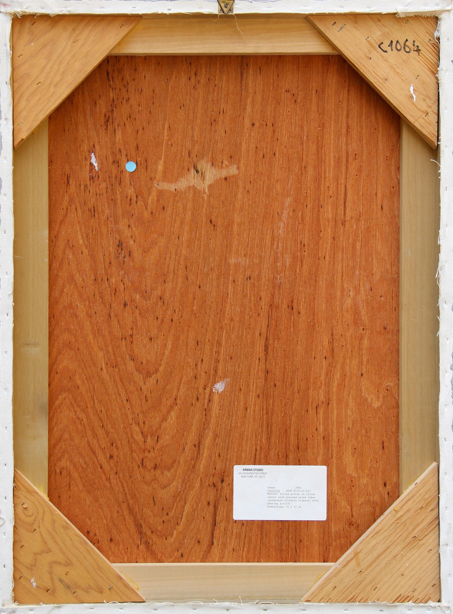 Fernandez ARMAN, Senza titolo, 2002, chitarra spezzata e tubetti di colore su tela applicata su tavola, cm 82x61