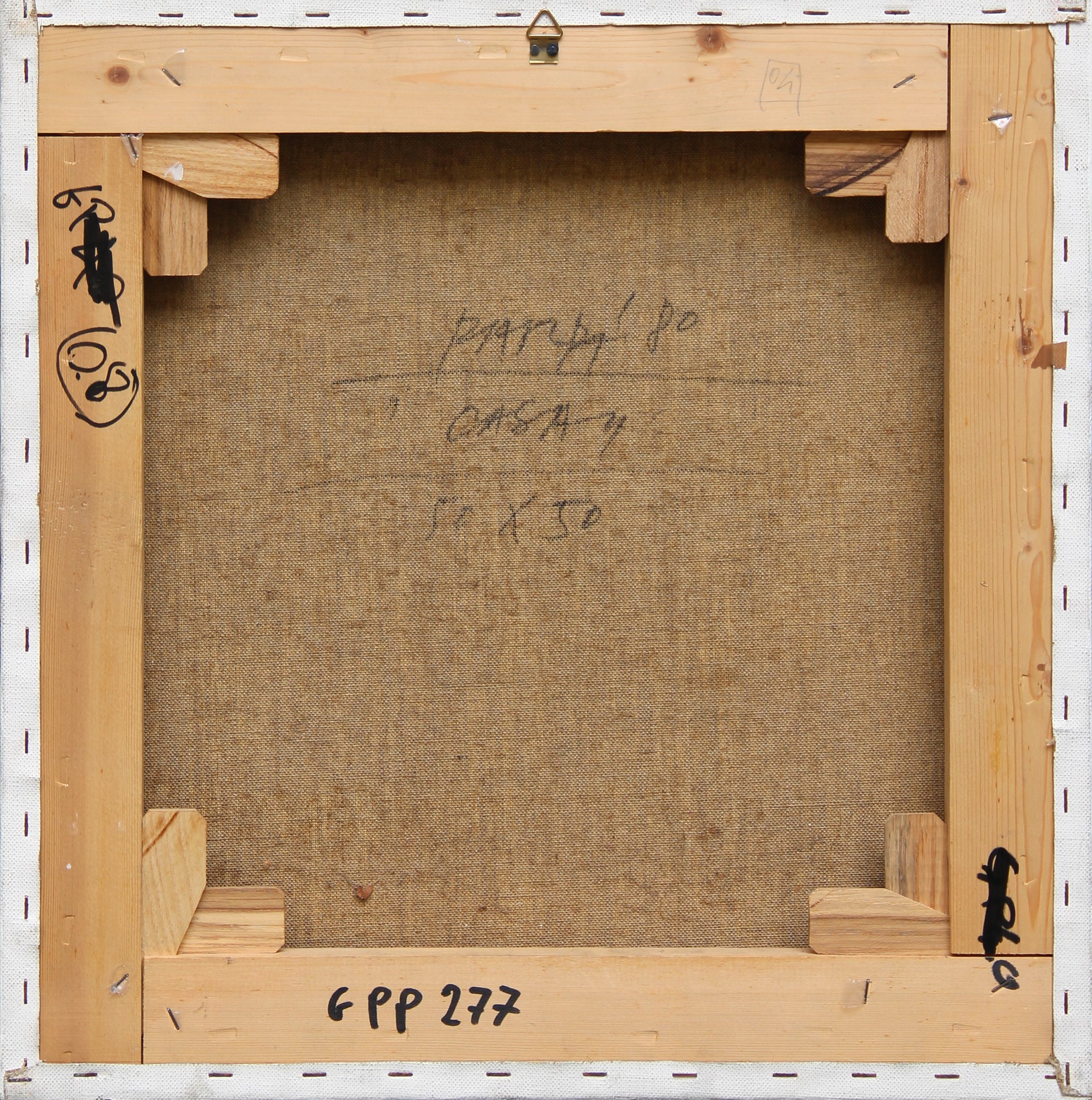 Firma, data, titolo, misura "Pardi, 80, Casa, 50x50" (al retro)