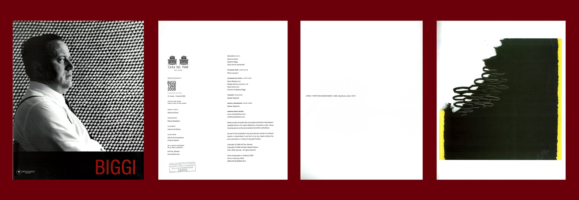 Firma, data, titolo, numerazione "Biggi, 2008, partitura bianconera, Ayron 328";