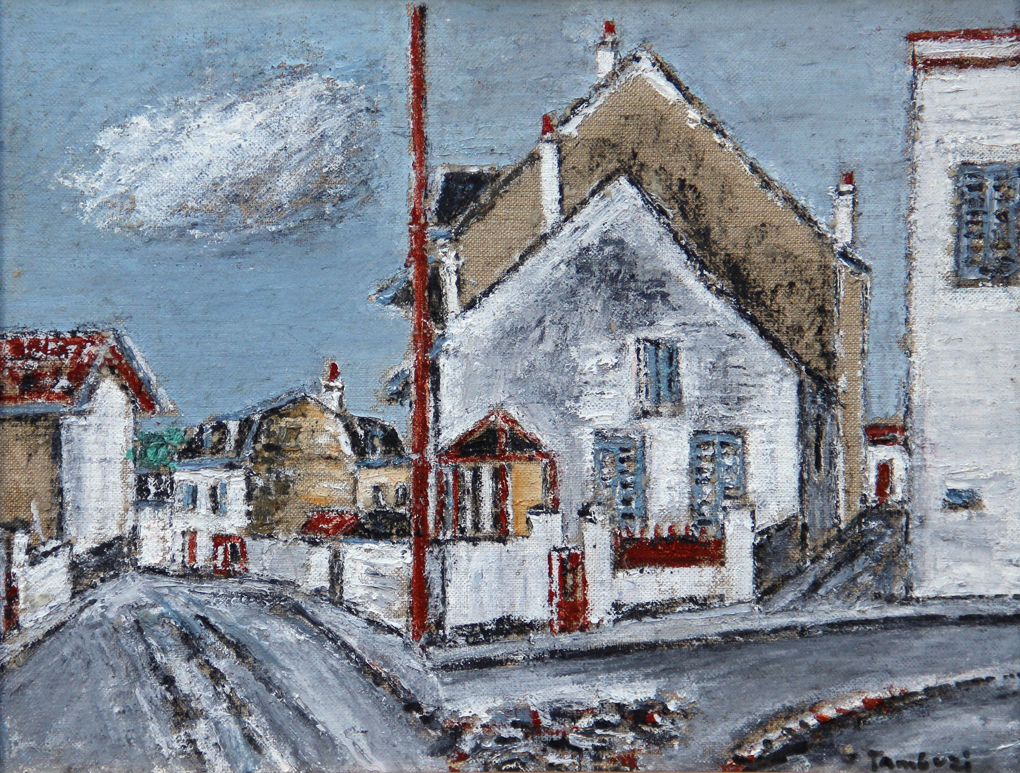 Orfeo TAMBURI, Case in campagna, 1984, olio su tela, cm 30x40