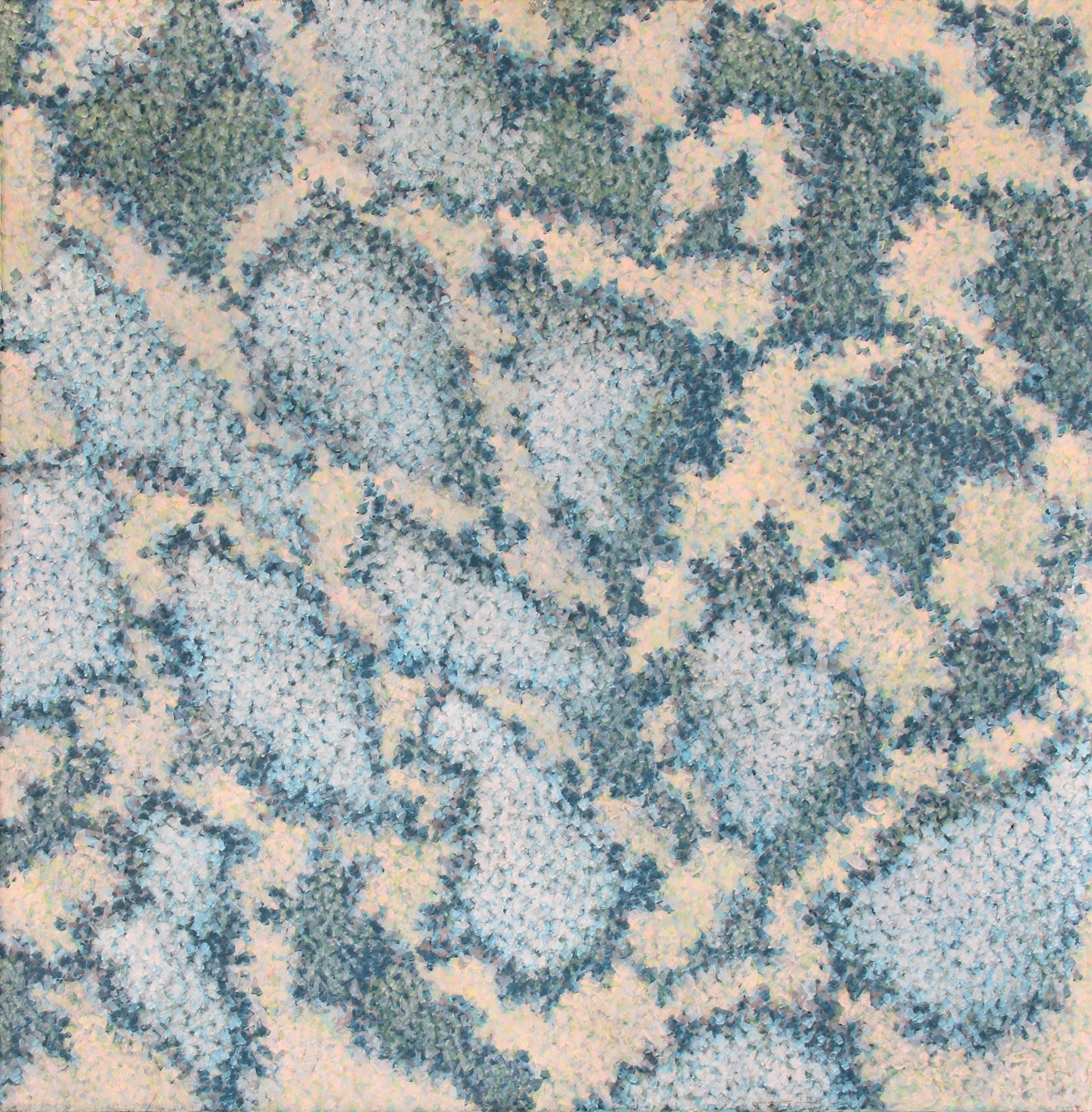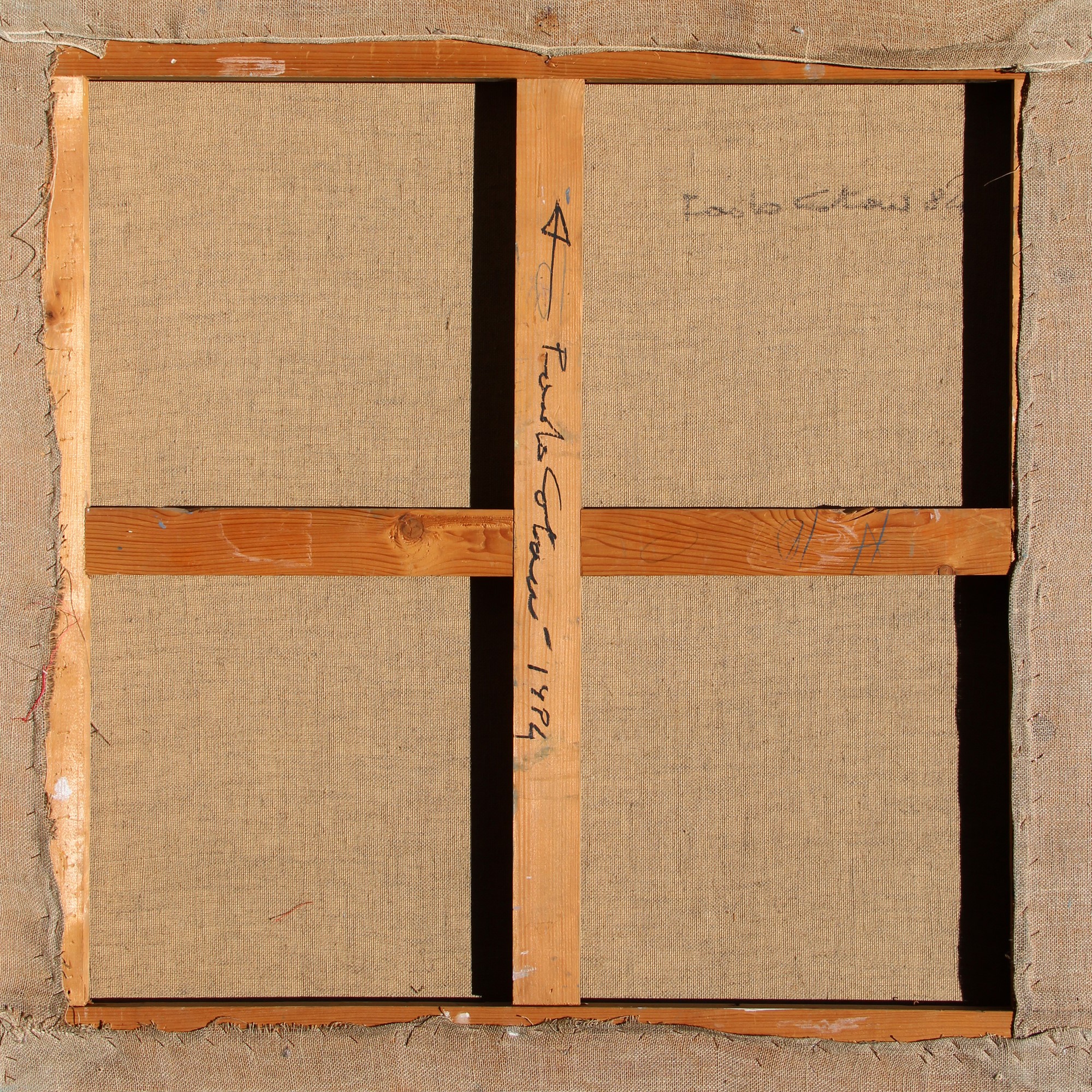 Paolo COTANI, Spazi virtuali e mondani, 1984, tecnica mista su cartoncino applicato su tela, cm 100x100