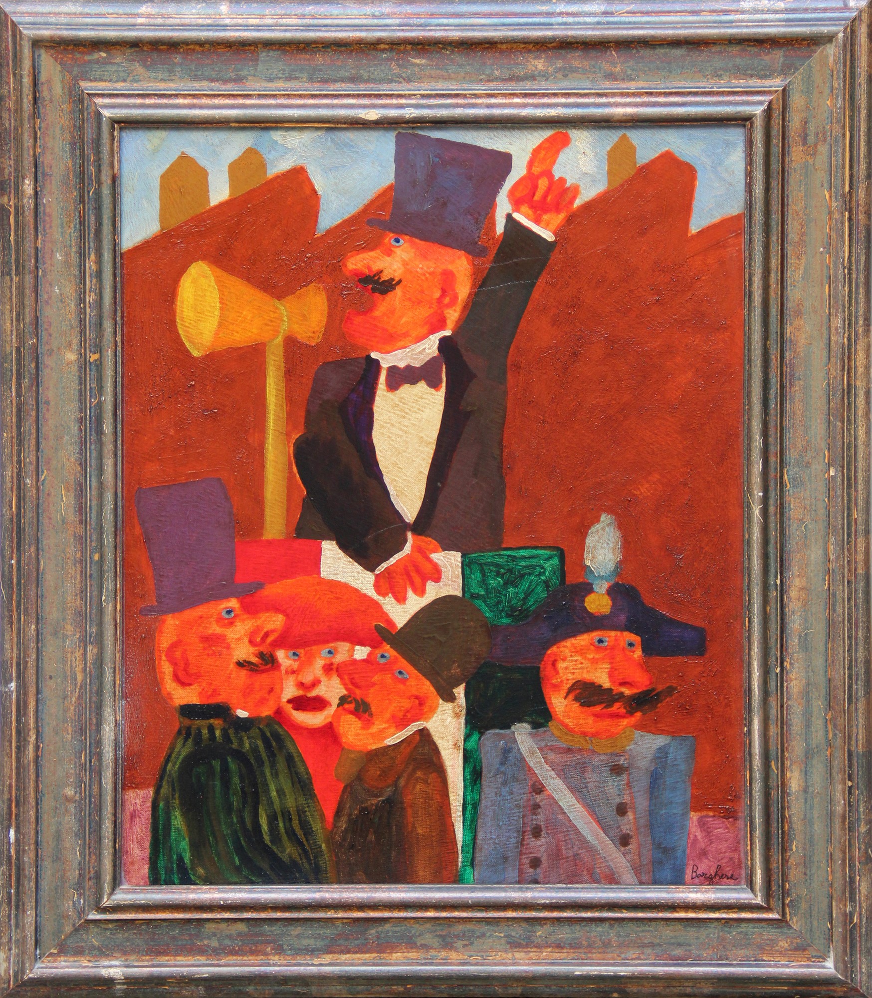 Franz BORGHESE, Il comizio, , olio su tela, cm 50x40