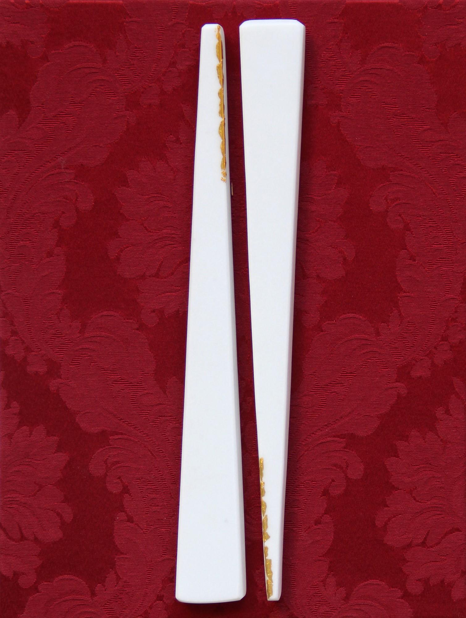 Gioni David PARRA, Stone textures XIII, 2022, marmo bianco e foglia d'oro su tessuto damascato rosso applicato su tela, cm 40x30x4