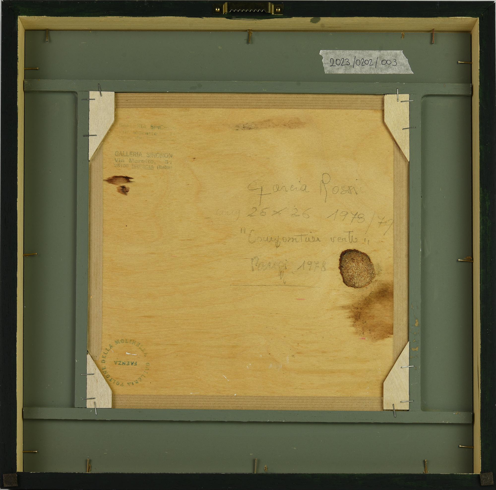 sul retro: firma, titolo, data, timbro della Galleria Sincron, Brescia e timbro della Galleria della Molinella, Faenza