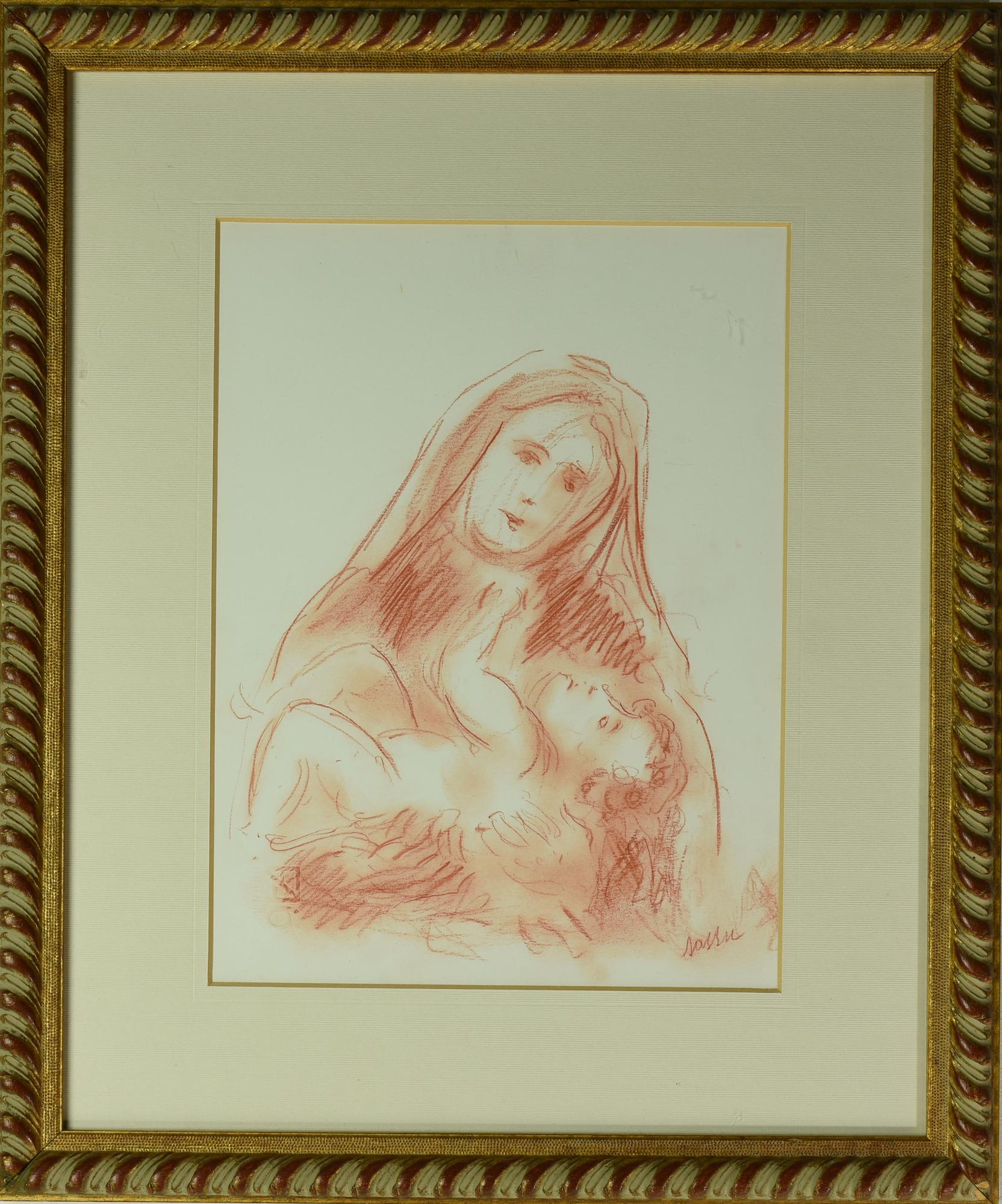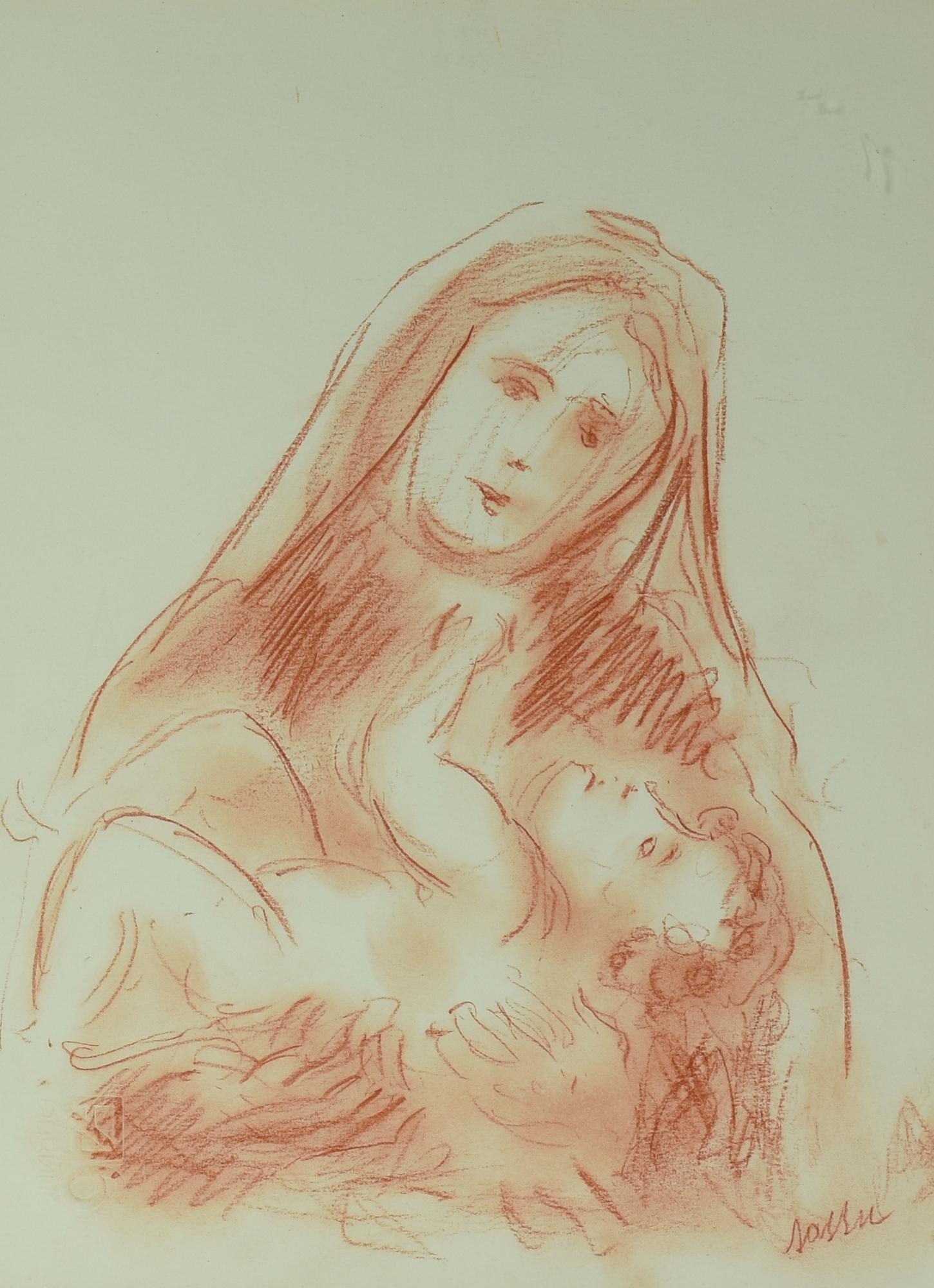 Aligi Sassu (1912 - 2000) MATERNITA' sanguigna su cartoncino, cm 32x24 firma