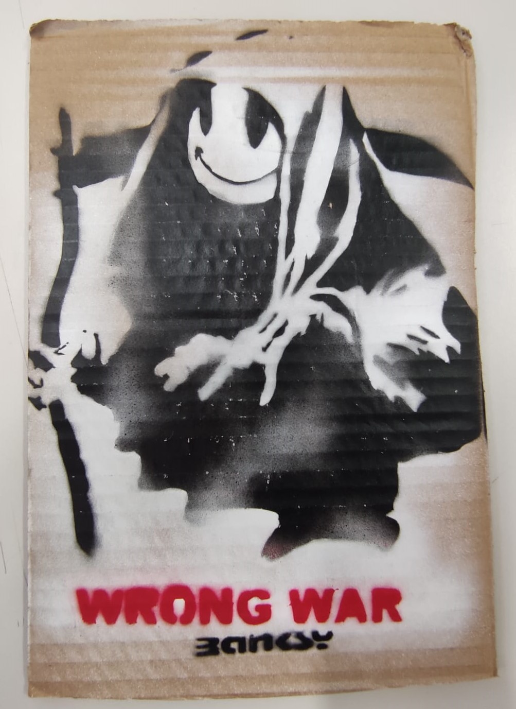 Firma a stencil in basso a destra, scritta e tiratura al verso: ‘Enjoy your free art!!!’ esemplare 25/25, timbro Dismaland Bemusement Park.