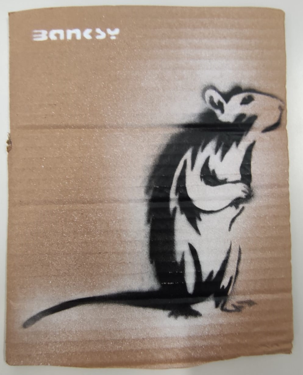 Firma a stencil in basso a destra, scritta e tiratura al verso: ‘Enjoy your free art!!!’ esemplare 18/20, timbro Dismaland Bemusement Park. Biglietto d’ingresso di Dismaland, Bemusement Park