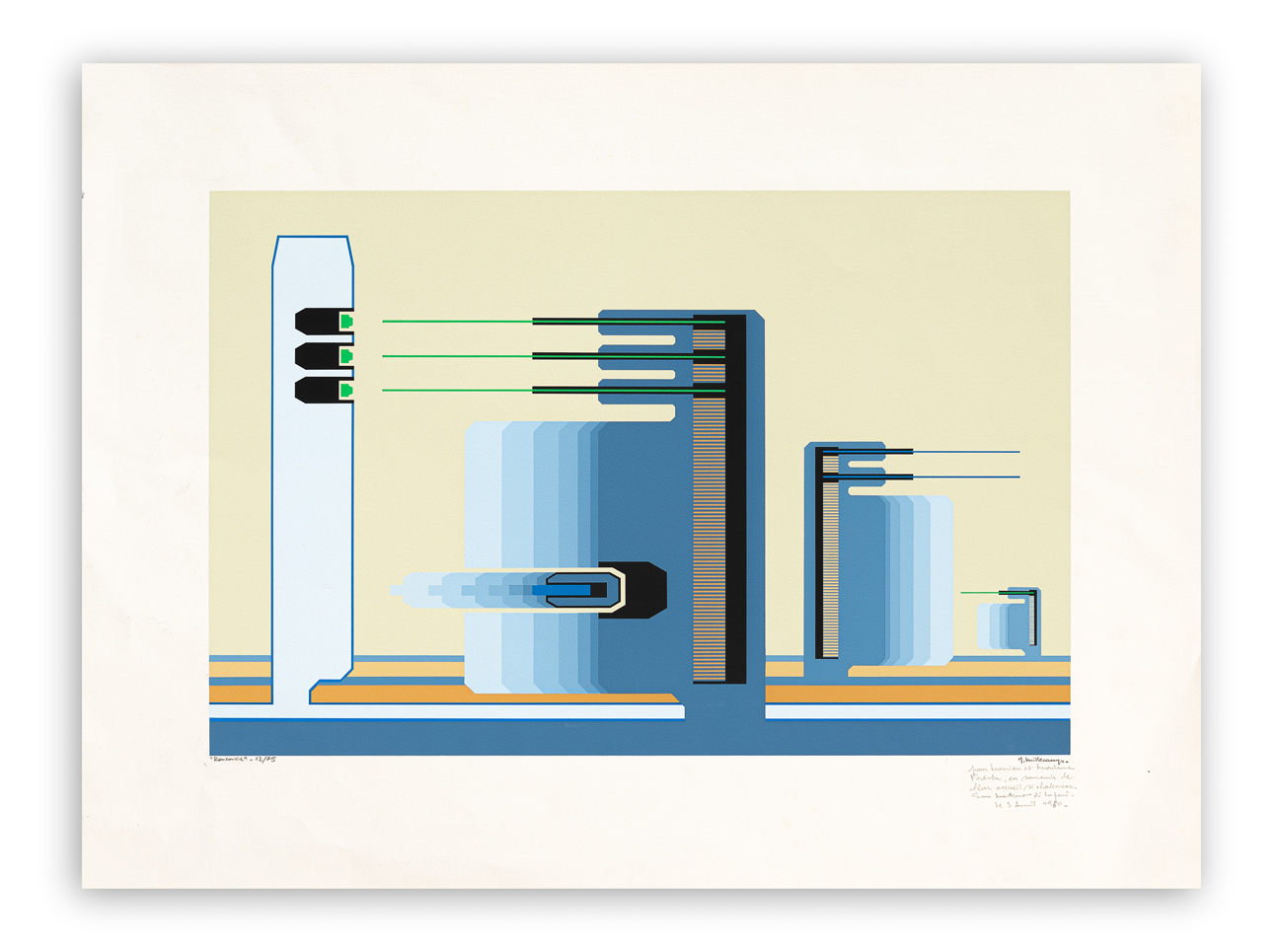Firma, titolo, numerazione (Esemplare 12/75) e dedica ad personam datata 1980 a matita al fronte