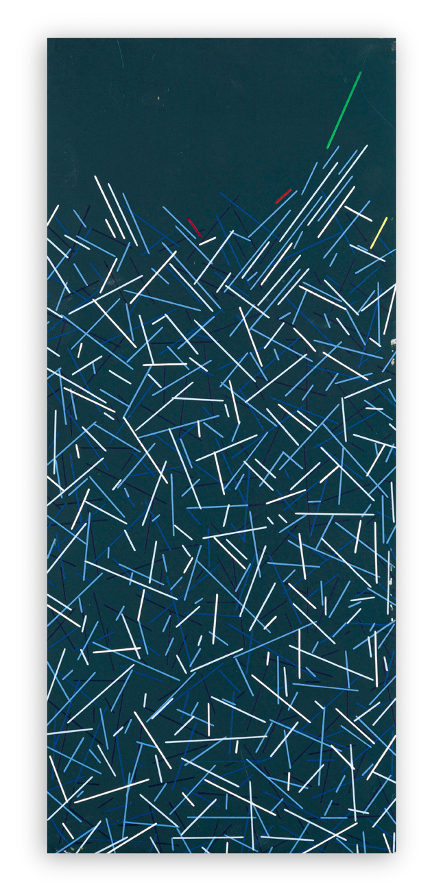 Firma, titolo, datazione, tecnica, timbro dell'Artista con numero di repertorio e indicazioni per il posizionamento al retro