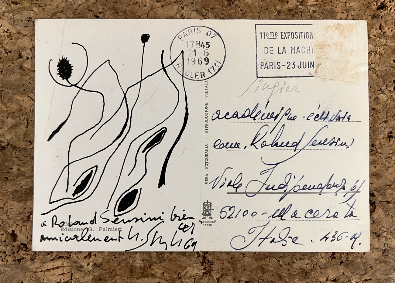 La cartolina è indirizzata dall'Artista al Cavaliere Rolando Sensini, Macerata