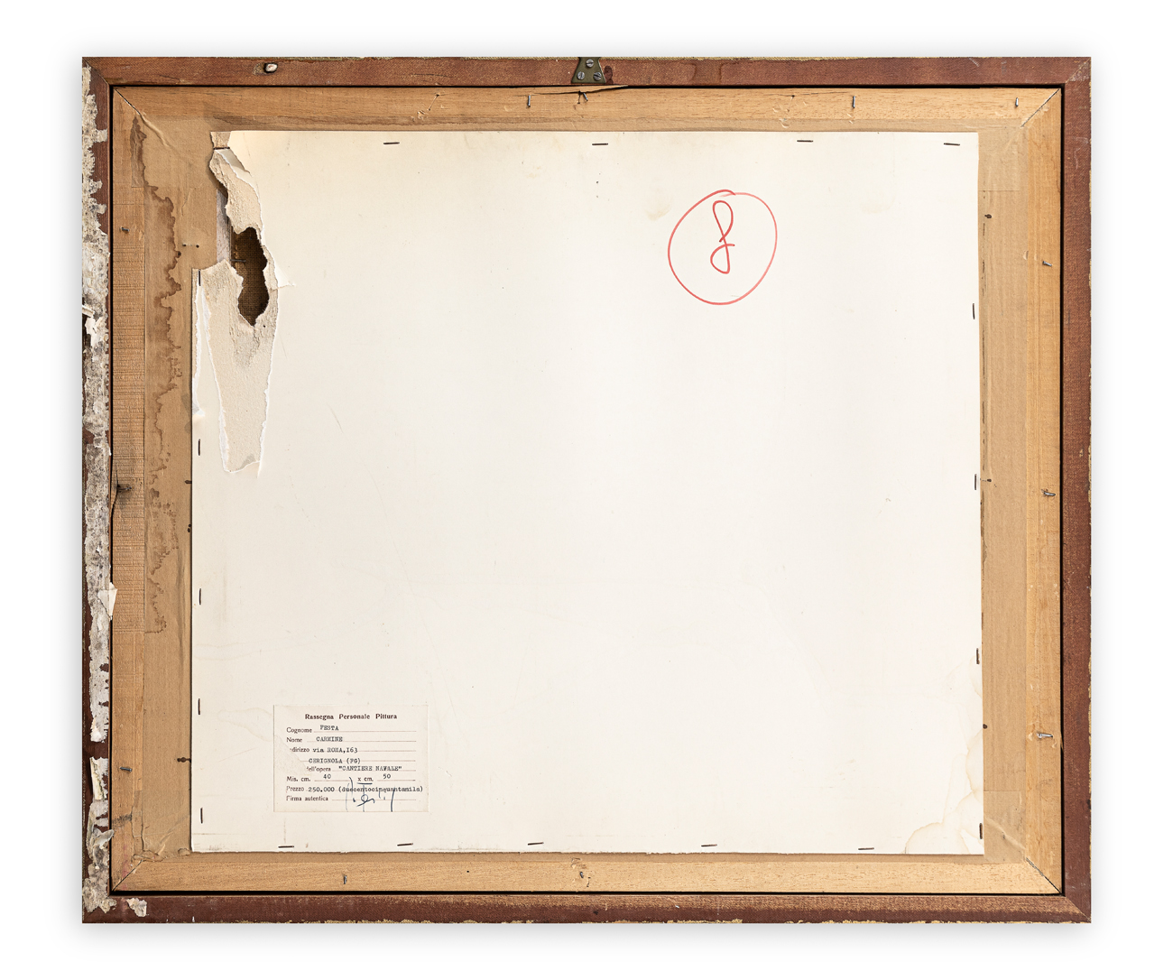 Etichetta dell'Artista al retro