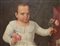 Ritratto di bambino con fiori rosa, in cornice antica, 17° secolo Cm 78x63, in cornice cm 100x85Dipinto ad olio su tela