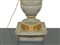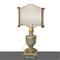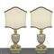 Coppia di Lumi in legno laccato azzurro/verde e dorato, nineteen° secolo h cm 50, con paralume h cm 87, base cm 20,5x21Con paralumeCon paralume