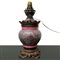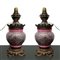 C. H. Stobwasser & Cº. Actien Gessellchaft (Berlino 1860) - Coppia di lumi a petrolio con base in metallo e corpo in porcellana con smalti nei toni del fucsia, verde tiffany e dorato, Tardo 19° secolo H cm 40ElettrificatiElettrificati