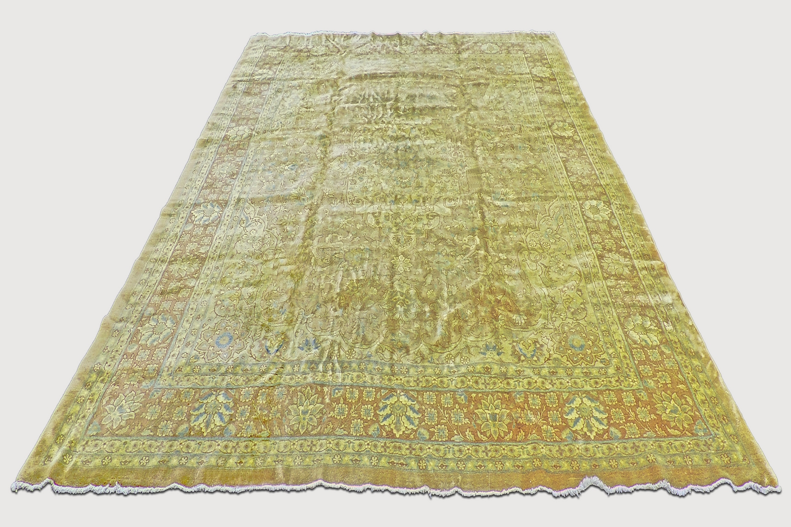 TAPPETO USHAK - USHAK CARPET fondo color crema, campo a motivi floreali e geometrici nei toni del rosso e del verde cm 440x340