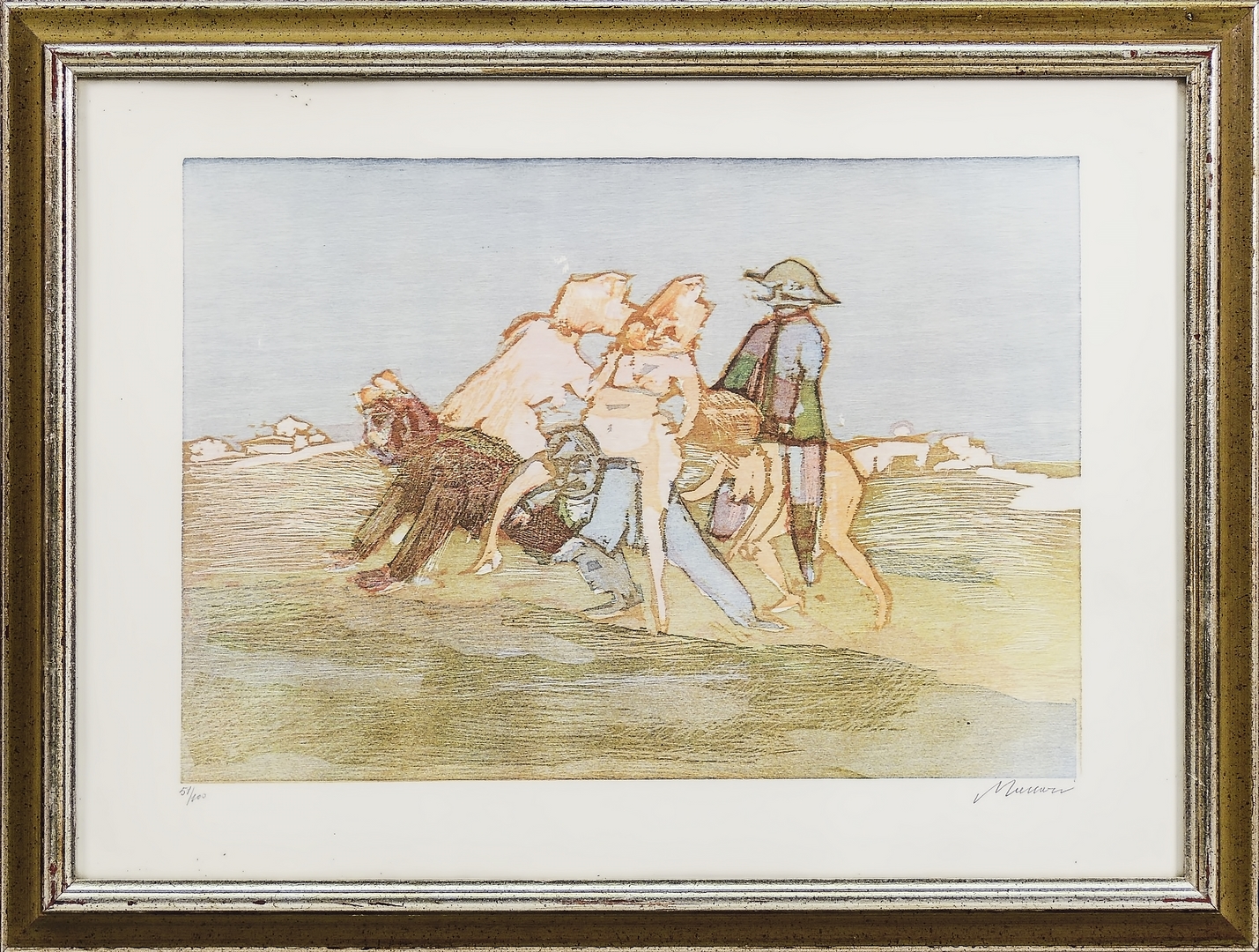 MINO MACCARI (1898-1989) Paesaggio e personaggi - Landscape and Figures litografia - lithograph, es 51/100, firmata, in cornice cm 38x55