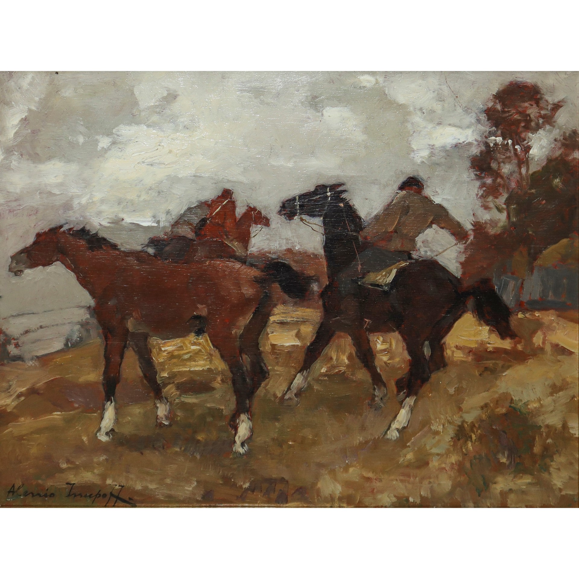 Alessio Issupoff (Kirov (Russia) 1889-Roma 1957) - Scena con cavallicm 34,5x44 in cornice 55x64Olio su tavolaFirmato in basso a sinistra