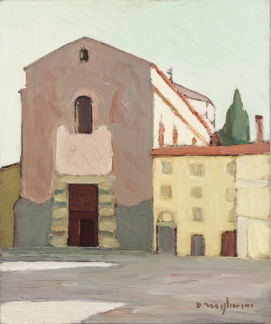 DINO MIGLIORINI (1907-2005) Veduta di Chiesa - Church View olio su faesite -...