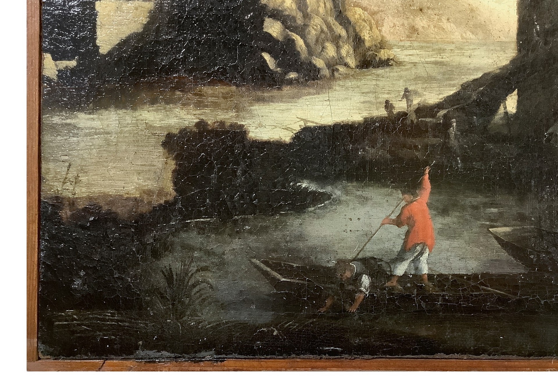 Giuseppe Zais (cerchia di) (Forno di Canale 22/03/1709-Treviso 29/12/1781) - Paesaggi fluviale con alberi frondosi, barche con pescatori, case e torri in lontananza, 18° secolo cm 42 x 72Olio su telaIl dipinto è espressione e testimonianza di un periodo ben determinato, in cui l’uomo è necessitato di incontrare la natura e di contemplarla in tutti i suoi aspetti. La scena detta una simbologia cosmica che lega e mette in comunicazione il paesaggio in tutti i propri aspetti naturali e le attività dell’uomo che vive, partecipa di una armonia globale.