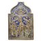 Icona da viaggio russa a cuspide, a rilievo. Fondo in smaltoH cm 13x9