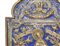 Icona da viaggio russa a cuspide, a rilievo. Fondo in smalto