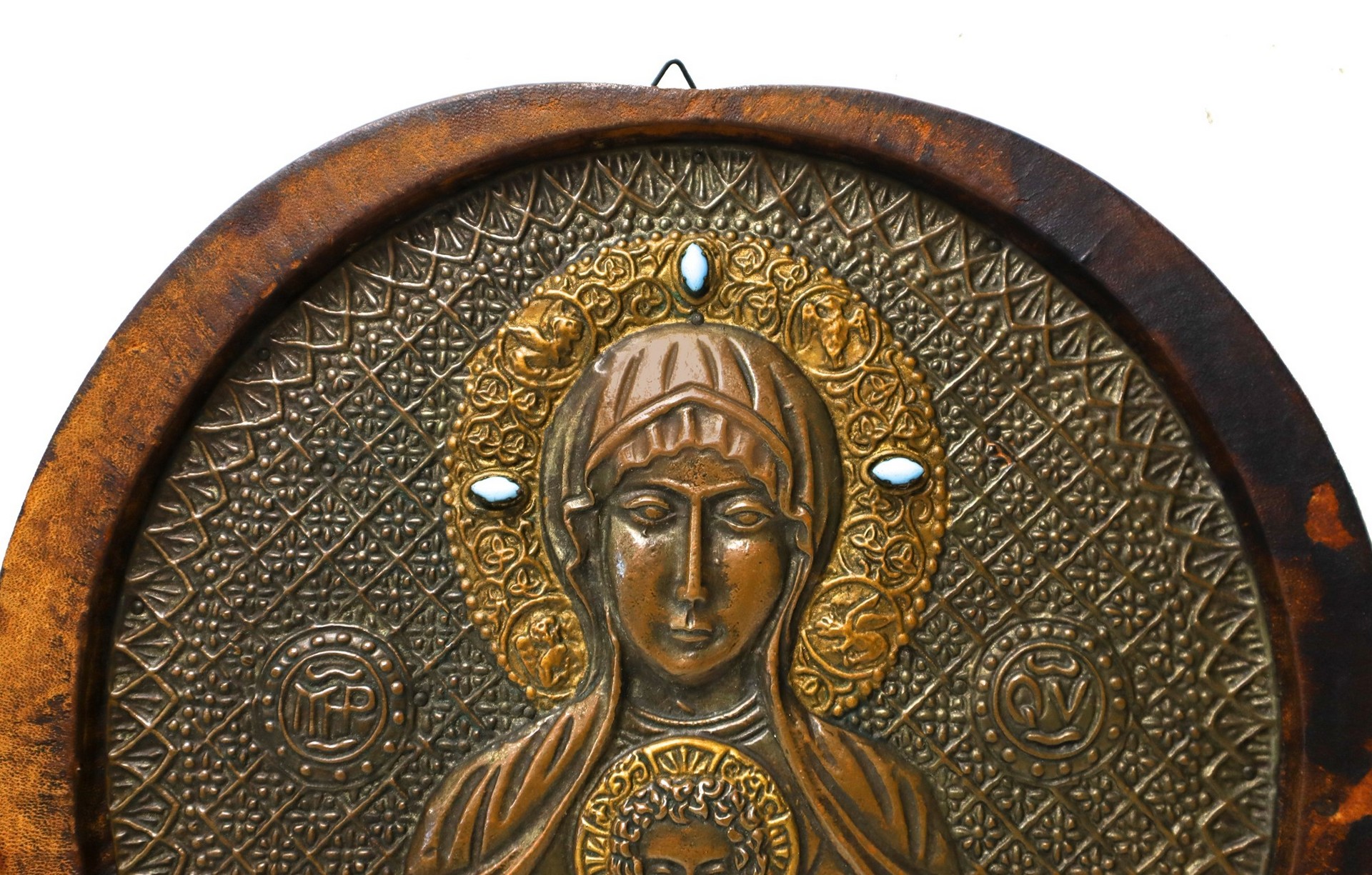 Icona a trittico, su base lignea, 20° secolo H cm 23x55