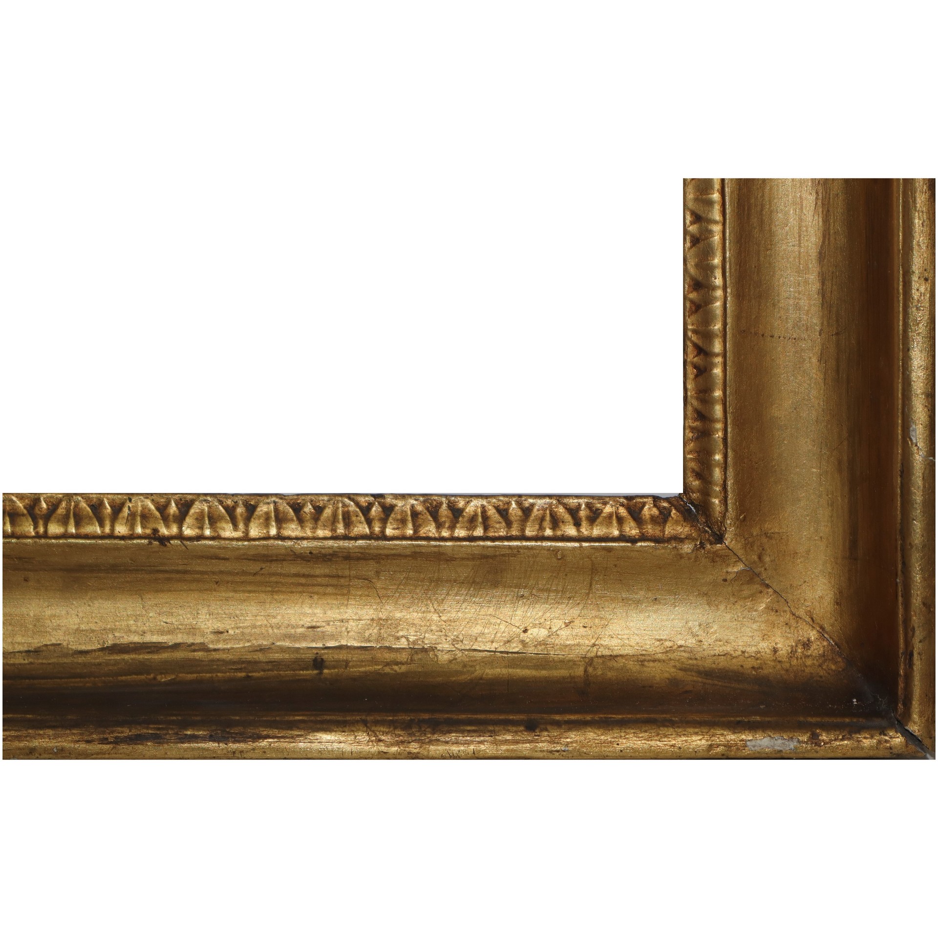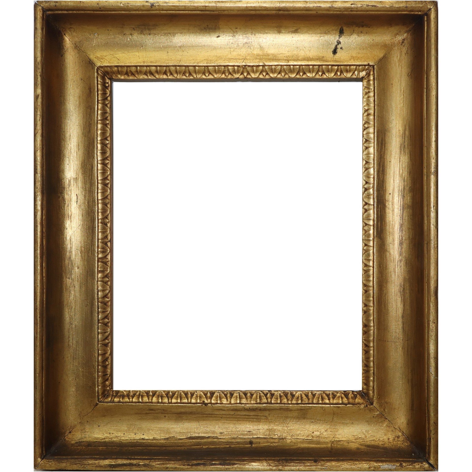 Cornice mezzacanna in legno dorato a foglia, Sicilia, 19° secolo Misure interne cm 32 x 26, 42 x 36