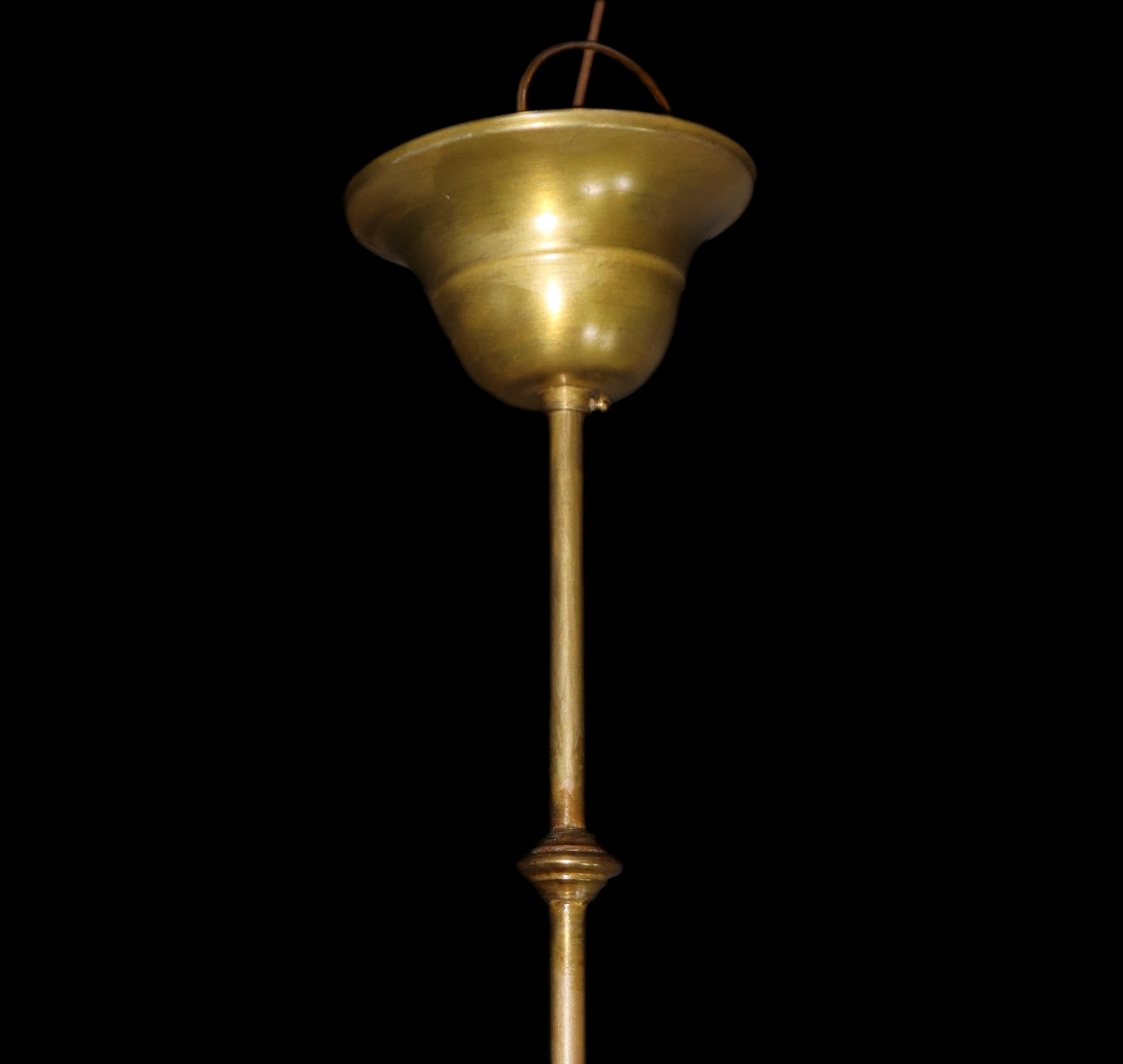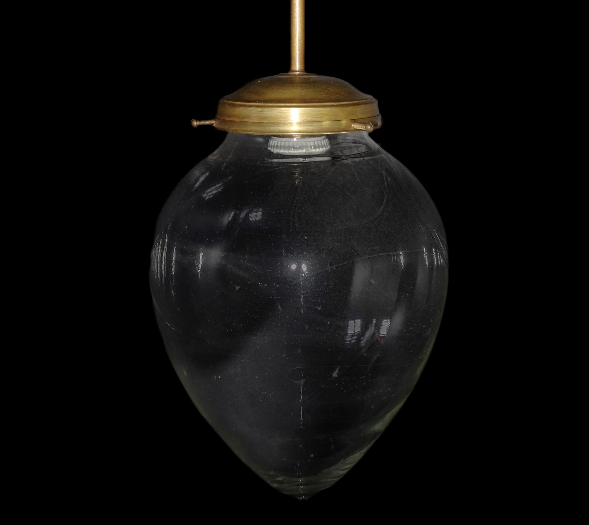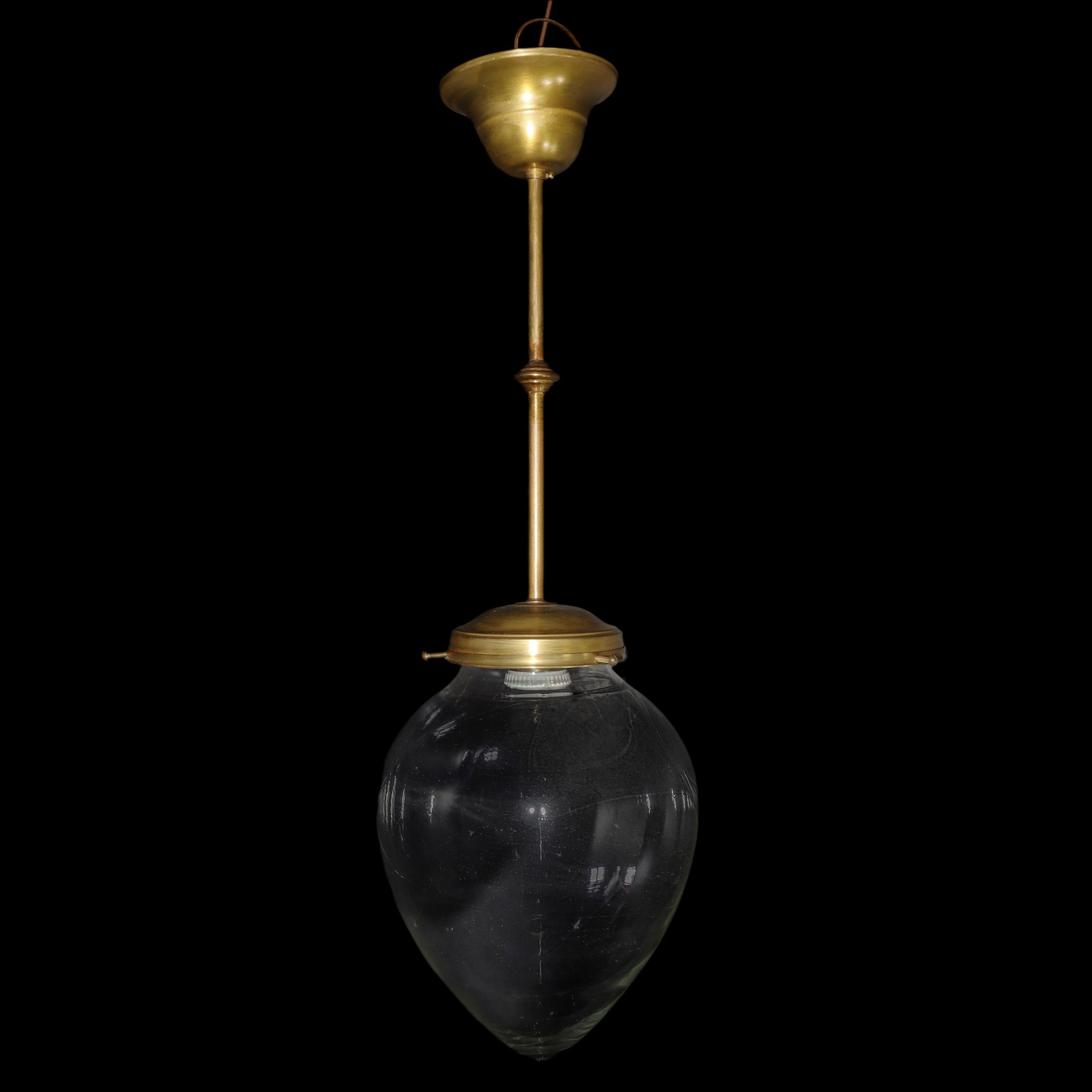 Lampadario monoluce a boccia in vetro trasparente, stelo in metallo doratoCm 60 x 20
