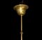 Lampadario monoluce a boccia in vetro trasparente, stelo in metallo dorato