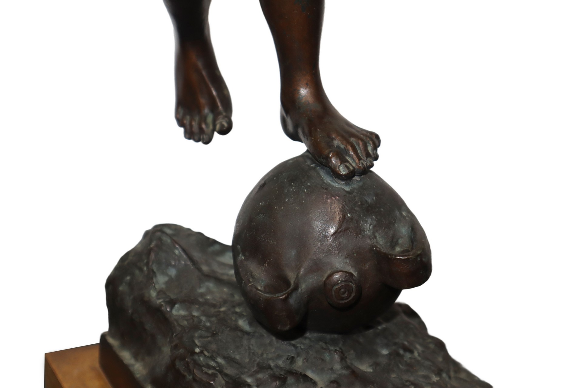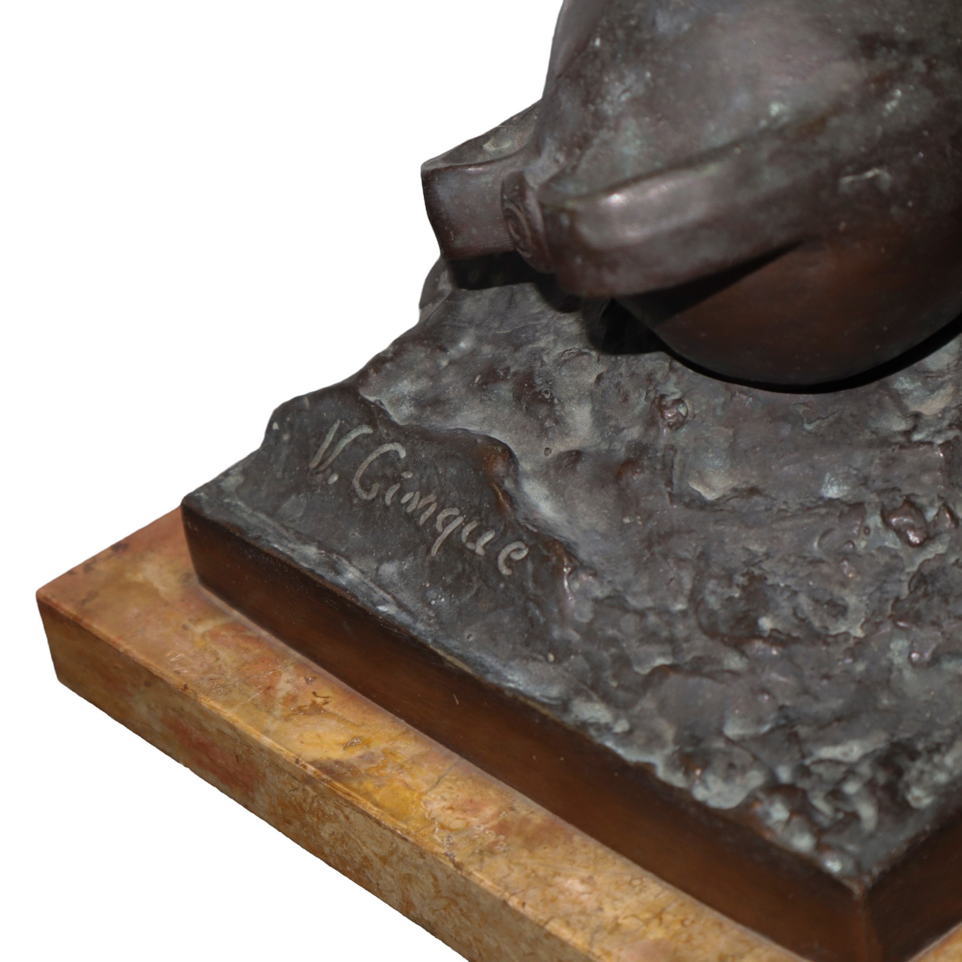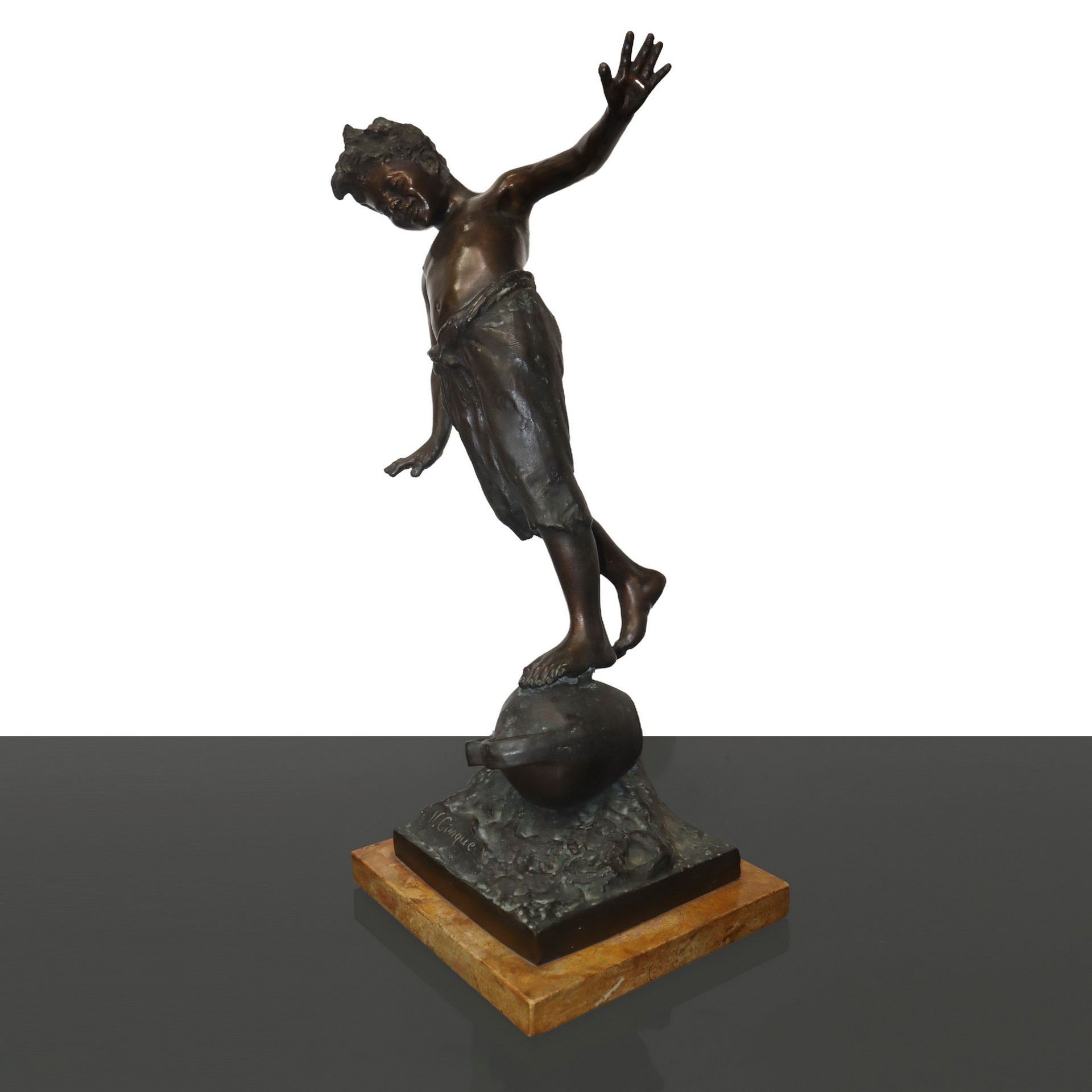 Vincenzo Cinque (Napoli 1852-Napoli 1929) - Ragazzo in equilibrio su brocca, scultura in bronzo patinato brunoH cm 45Base in marmo cm 2Base in marmo cm 2