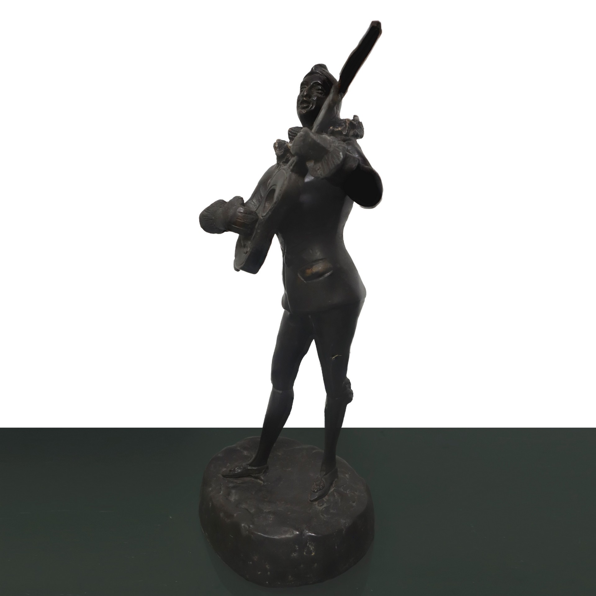 Pierrot con chitarra, scultura in bronzo, Tardo 19° secolo H cm 31
