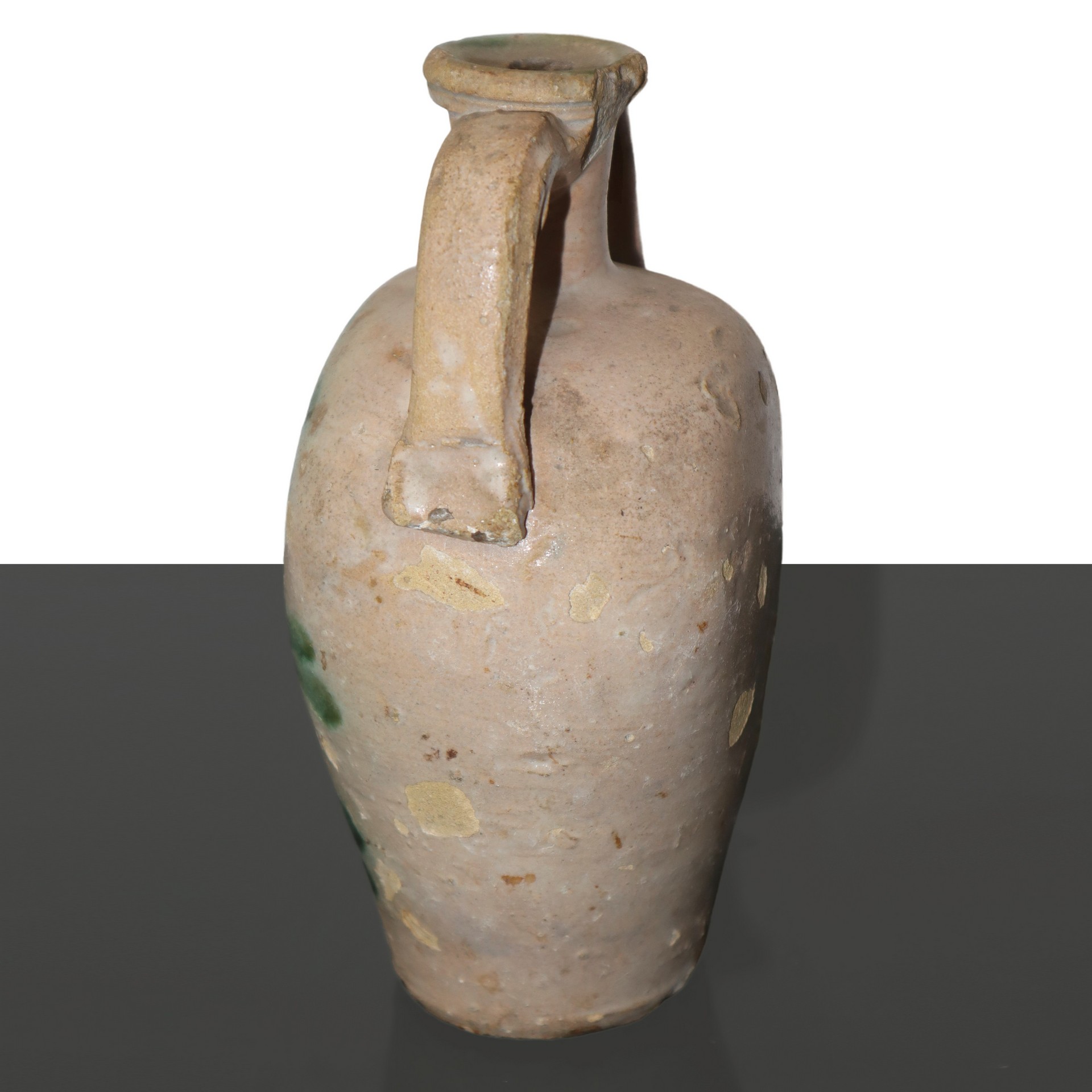 Quartara in maiolica policroma di Caltagirone con manici e decorazioni di fiori e foglie , Primi 20° secolo
